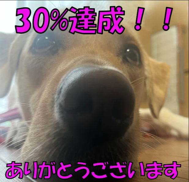 達成率30%達成しました!これまで63人の支援者さんにご支援いただきました!皆様ご支援ありがとうございます。1/3到達できたことを心から嬉しく思います!あと残り2/3ですが介助犬として立派に活躍できる犬たちの未来のためにもそして介助犬を必要としている身体障がい者の方たちにできるだけ多くの介助犬を届けるためにもお力添えよろしくお願いいたします。