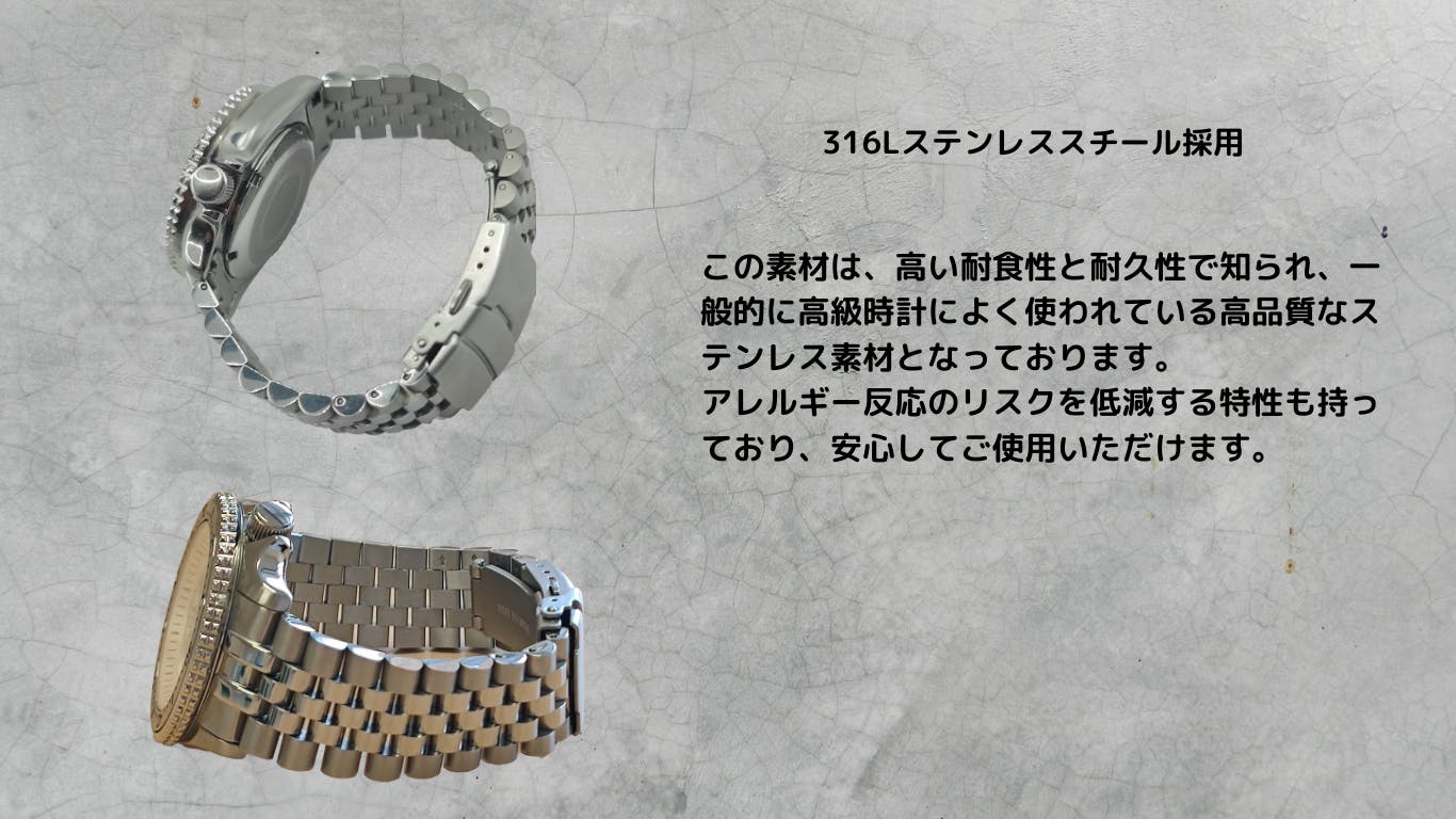 美しい見た目だけではなく、高級ブランド時計等にも使用されている高品質な316Lのステンレス素材、サファイアクリスタルも使用されており、ムーブメントは安心の日本製のNH35Aを搭載しており、ハック機能や日付を素早く設定できるクイックセット機能も備えています。機械式・自動巻きの腕時計であり、信頼と実績のあるムーブメントを使用していることから、末永く使える時計になります。