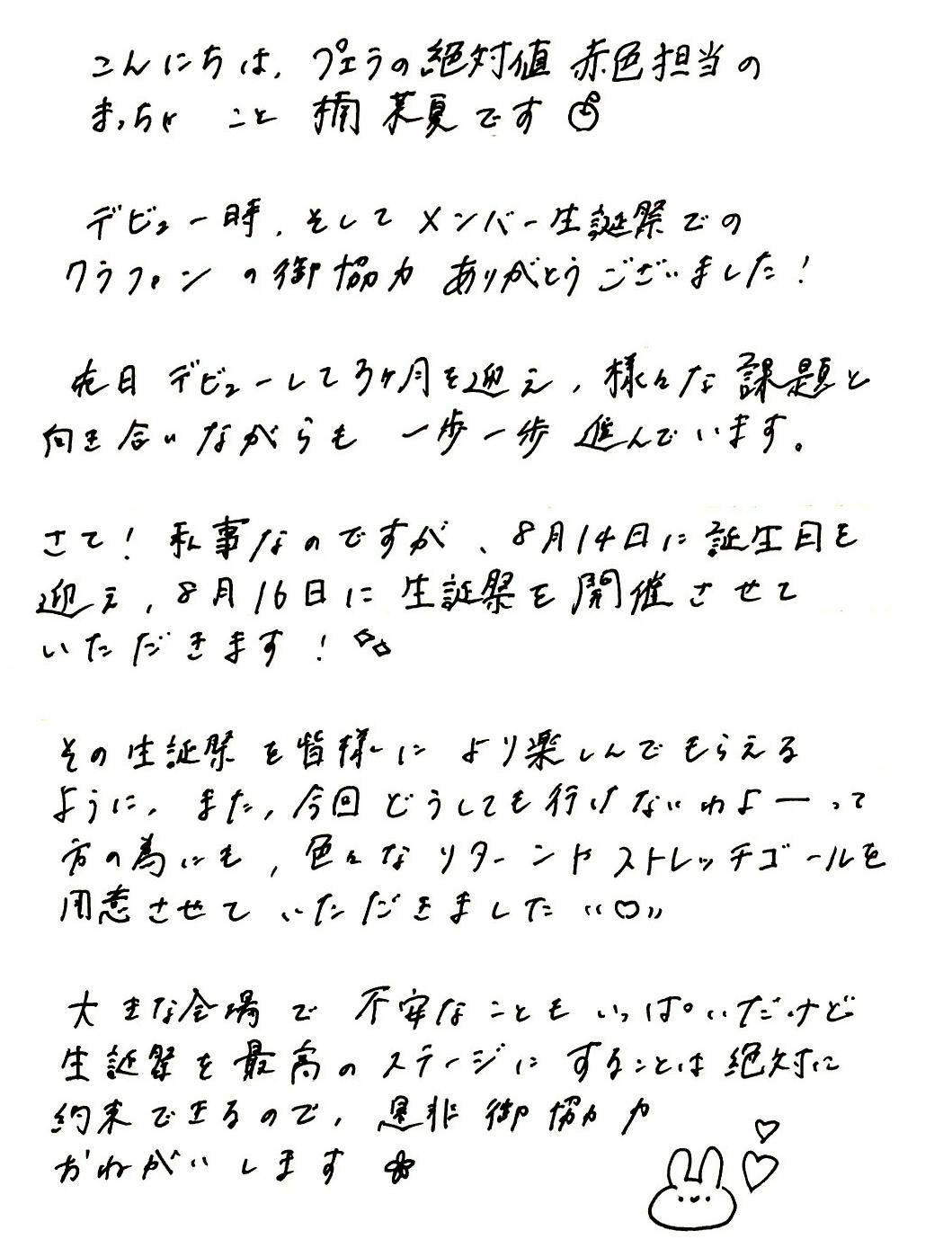 ・生誕当日 特典会で使える20秒動画 (ソロor2ショット)or20秒間撮影券(お客様のカメラ)¥2,500
