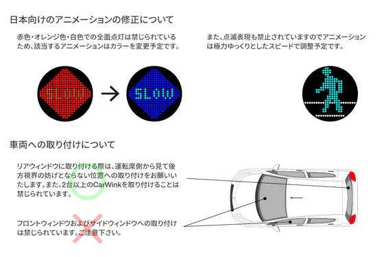 日本の道交法・保安基準への適合を目的として、アニメーション仕様の修正を検討していますのでご報告いたします。