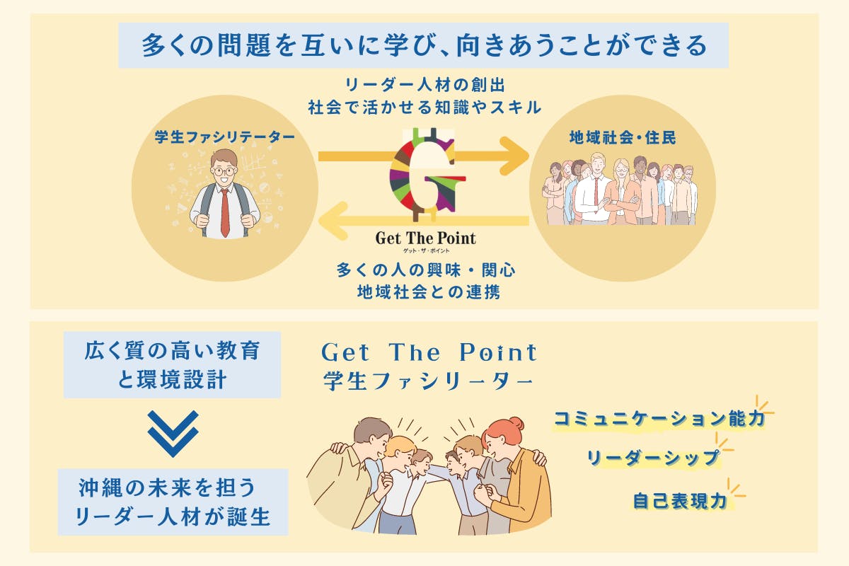 私達は、今回のクラウドファンディングを通して沖縄を「次世代リーダー創出の聖地」にしたいと考えています。その為にクラウドファンディング終了後に中学生・高校生を対象にGet the pointのファシリテーターを5人を誕生させます。ファシリテーター5名の誕生に伴い、「うちなー新リーダー共育プロジェクト」を実施します。