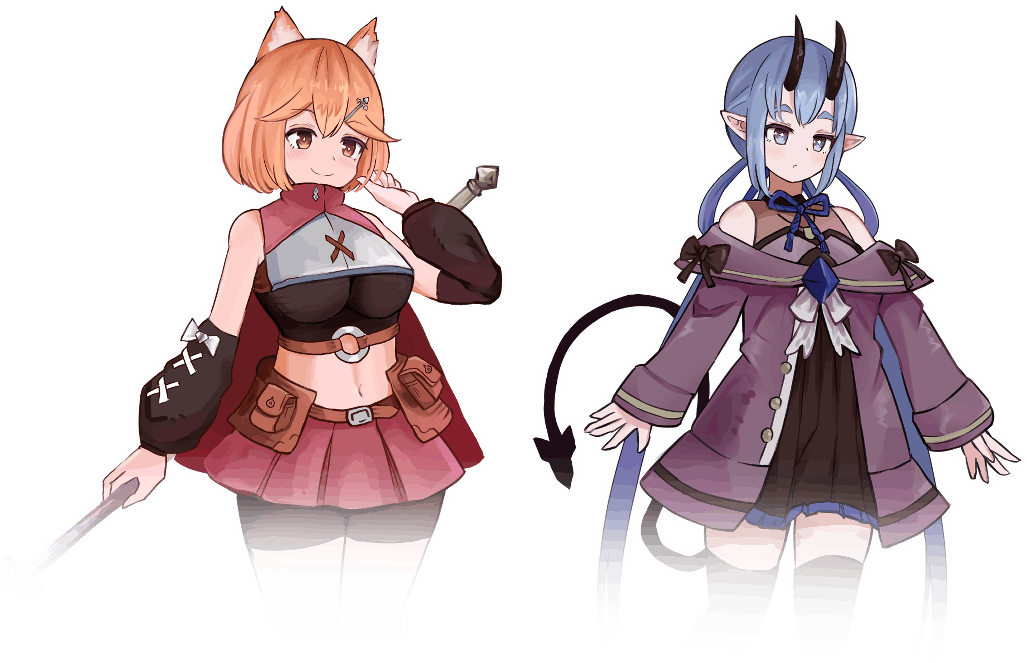 本作の主人公、ケモ耳魔法使いのヒマリちゃんと悪魔の少女イブちゃん。