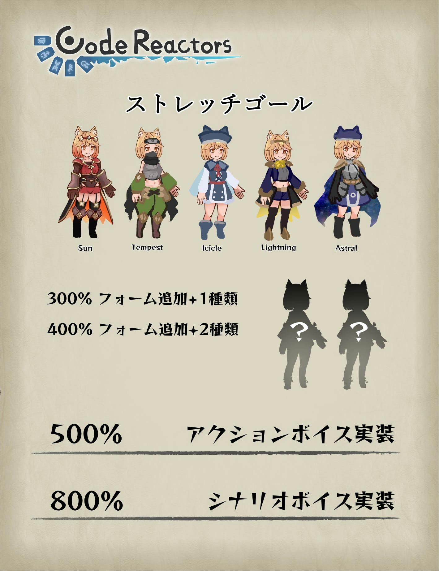 ストレッチゴール500%達成したあかつきには、メインキャラクターにアクションボイスを実装します!攻撃するときに言う「たあっ!やぁっ!」みたいなアレです。戦闘の臨場感UPを狙います!