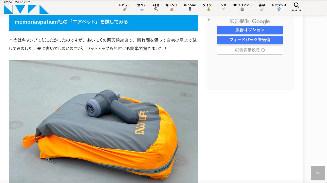 収納まで完結!連結で大きさも自由自在!快適なアウトドアを実現【エアーマットレス】の記事が公開されました。第1回目の記事をレビューします。