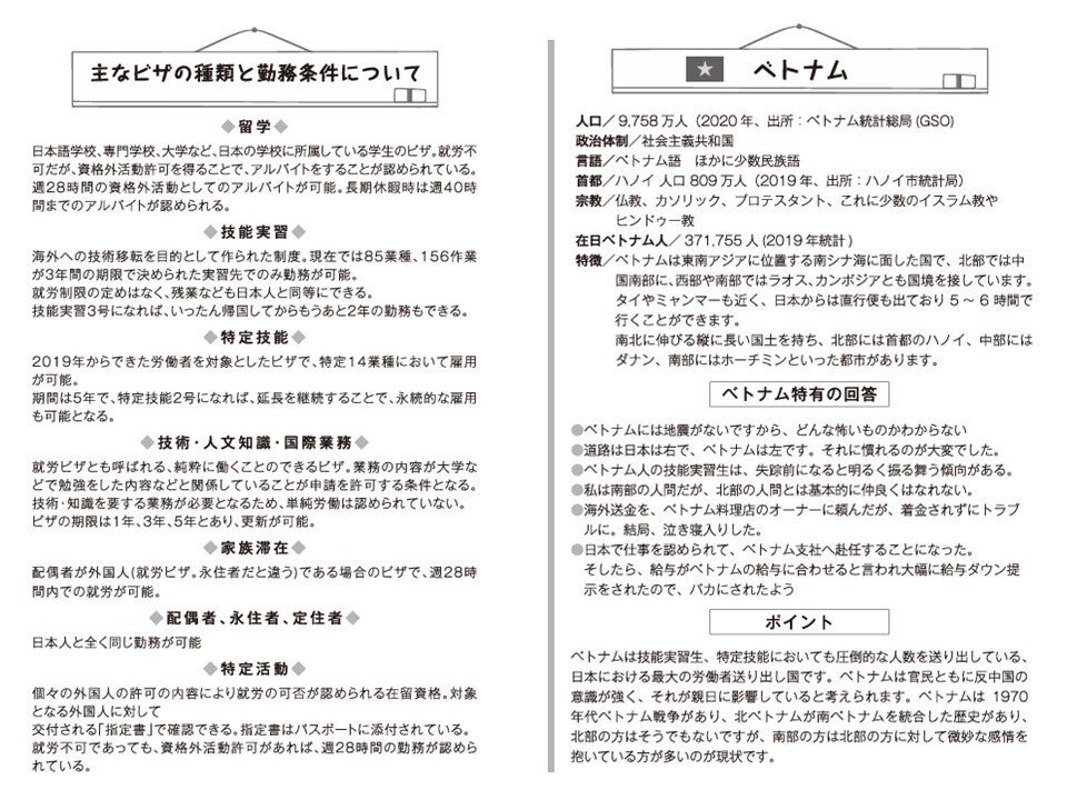 受け入れ後も外国人を指導する責任者に渡しておけば、こういう場面ではどう対応すればいいか、ということもわかるようになります。