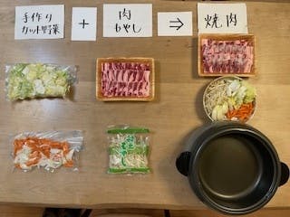 手作りカット野菜(キャベツ&人参&玉ねぎ)、肉、もやしで『焼肉』!