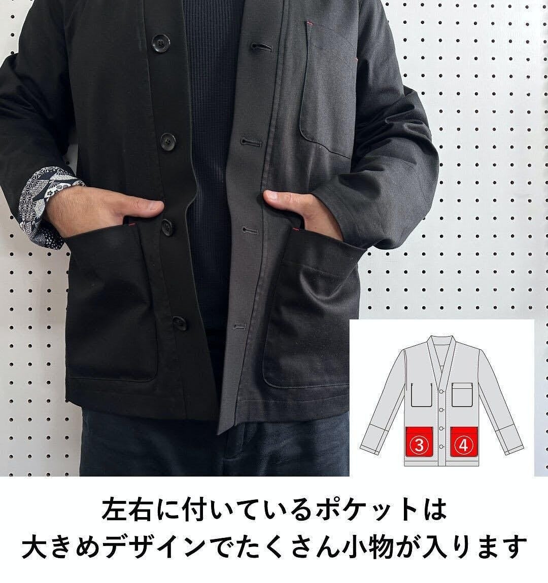 ワークジャケットは現代の作務衣的に、僕が家事やキャンプ、家庭菜園などでも和を感じながら人とは違ったカッコイイ和の服が欲しくてデザインしました。