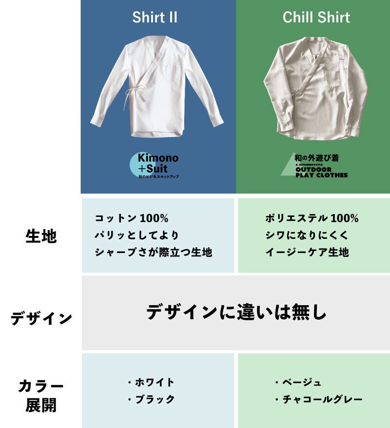 下記の動画では実際に私がShirt IIとChill Shirtを着比べています。