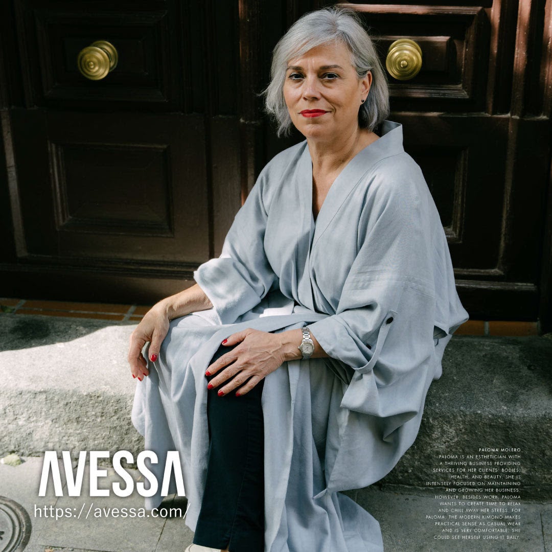 スペインの町並みでの着物ガウンのスナップ掲載。