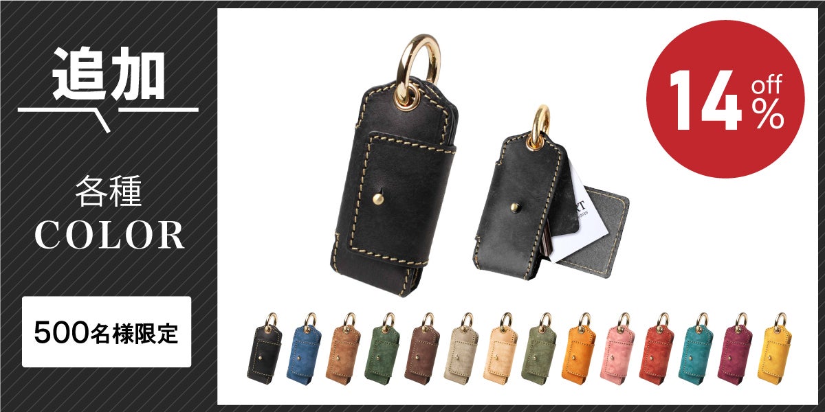 [キーケース:お好みのカラー]×1点【500名様限定】 販売予定価格¥4,400(税・送料込)のところ、早割支援者様限定14%OFFの¥3,780(税・送料込)にて承ります。 ■お届け予定:2023年11月末までに発送 ※全て国内工房にてハンドメイドで仕上げている為1日に作れる数が限られており納期が11月末となってしまう事ご了承ください。