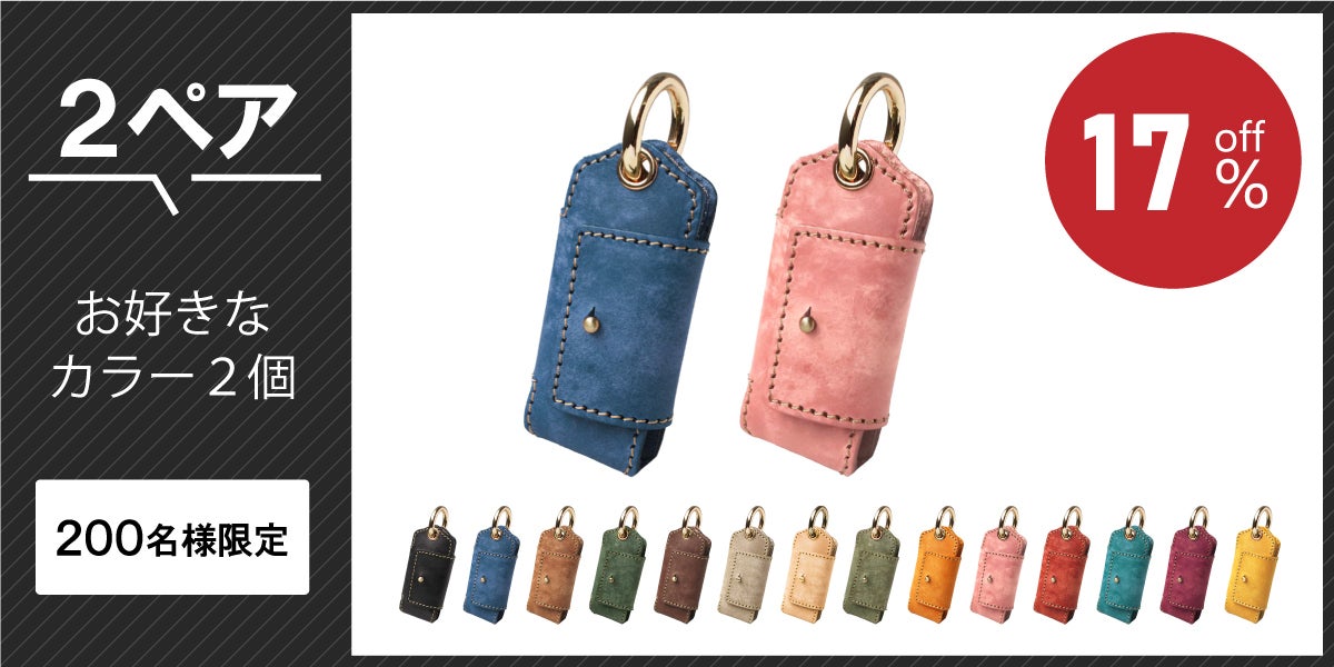 [キーケース:お好みのカラー]×2点【200名様限定】 販売予定価格¥8,800(税・送料込)のところ、2個ペア支援者様限定17%OFFの¥7,300(税・送料込)にて承ります。 ■お届け予定:2023年11月末までに発送 ※全て国内工房にてハンドメイドで仕上げている為1日に作れる数が限られており納期が11月末となってしまう事ご了承ください。
