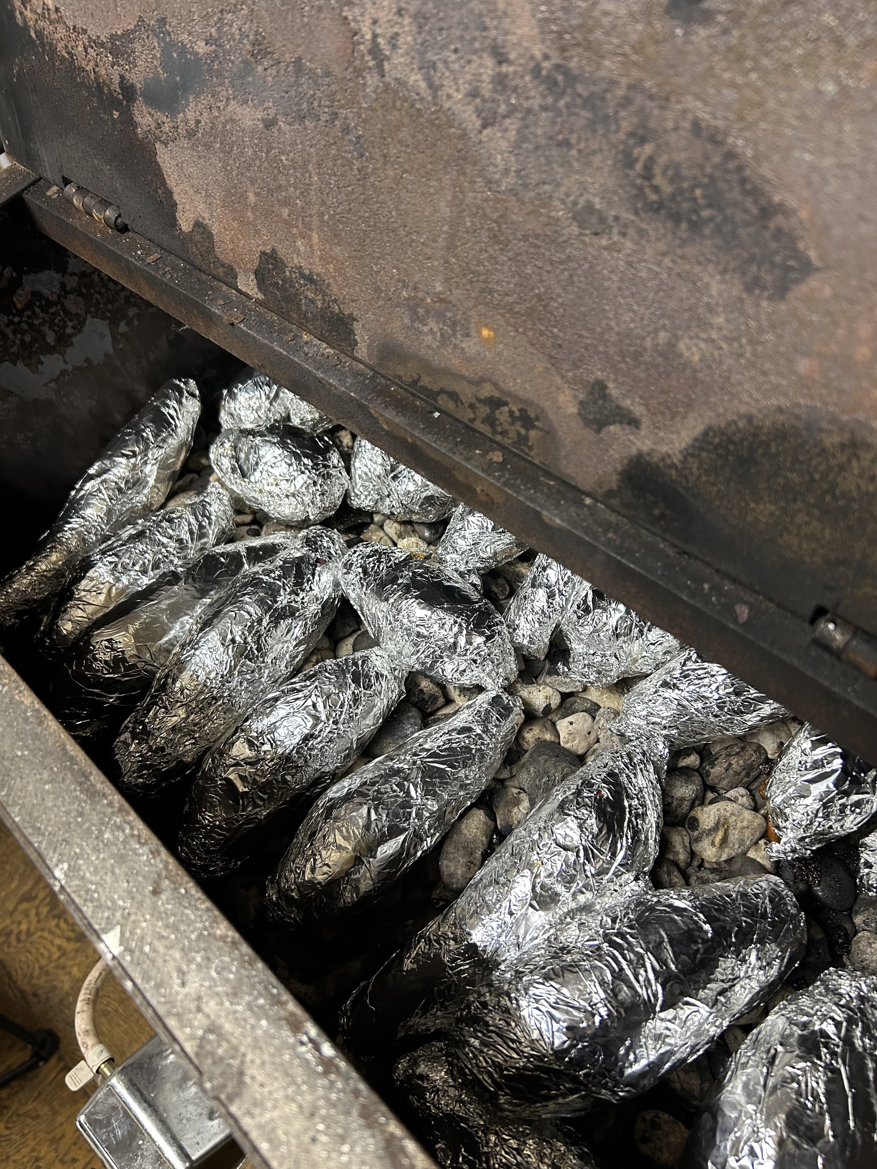 その後、約160〜180度に熱した石焼釜で細かな温度調整をしながら2〜3時間かけてお芋を焼いていきます。