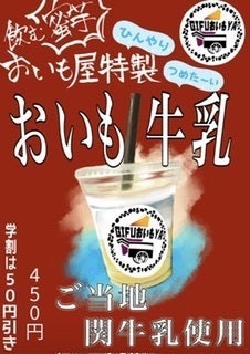 ご当地で大人気の関牛乳を使用した『おいも牛乳』『蜜芋アイス』などを販売させて頂いております。
