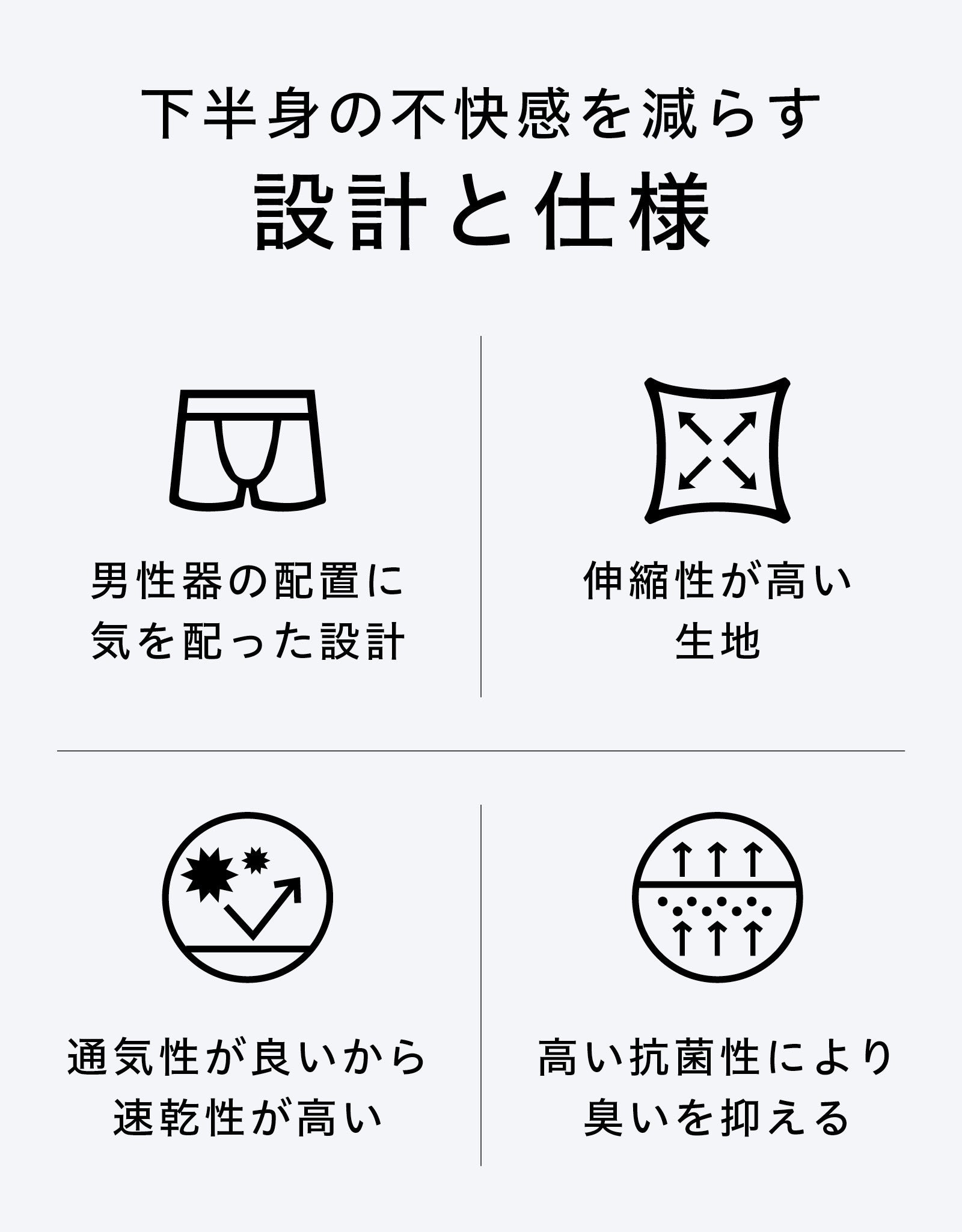 ●男性器の配置に気を配った設計。伸縮性&通気性&抗菌性もバッチリ