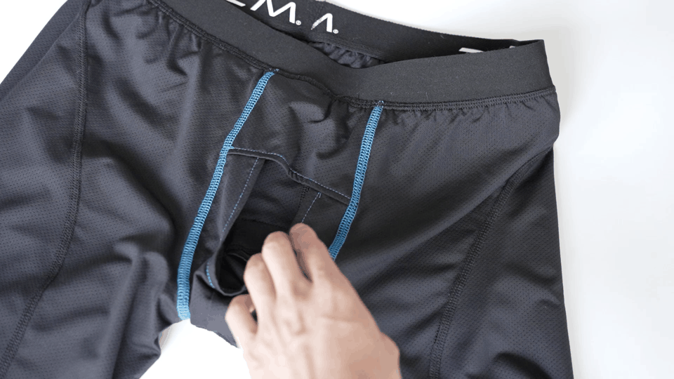 男性器と内股の間にインナー生地があるから、肌同士でベタつく心配が減ります。