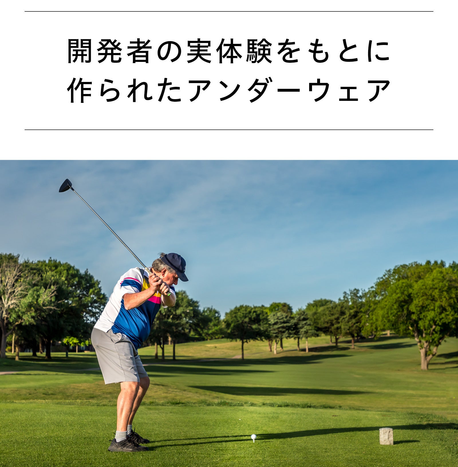 さらに男性器が内股にベタリとくっつく不快感もあり、今すぐにでも何とかしたい気持ちがありました。パンツを履いて不快感を覚えるぐらいなら、ノーパンでもいいからゴルフを快適に楽しみたい!そんな思いから、パンツの蒸れによる下半身の不快感を抑えるBOXEMアンダーウエアが生まれたのです。