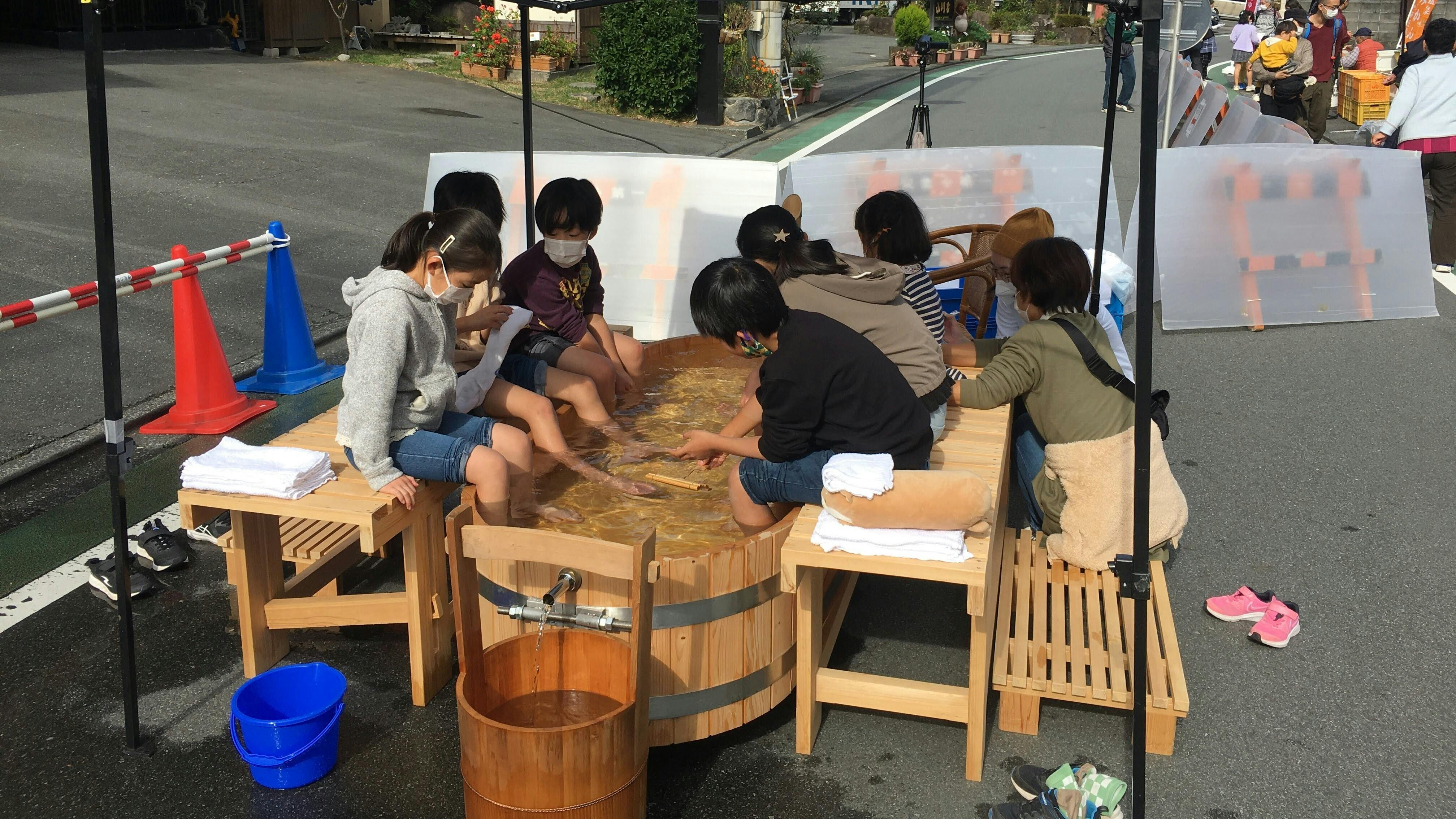 伊豆長岡温泉お散歩市の足湯にて