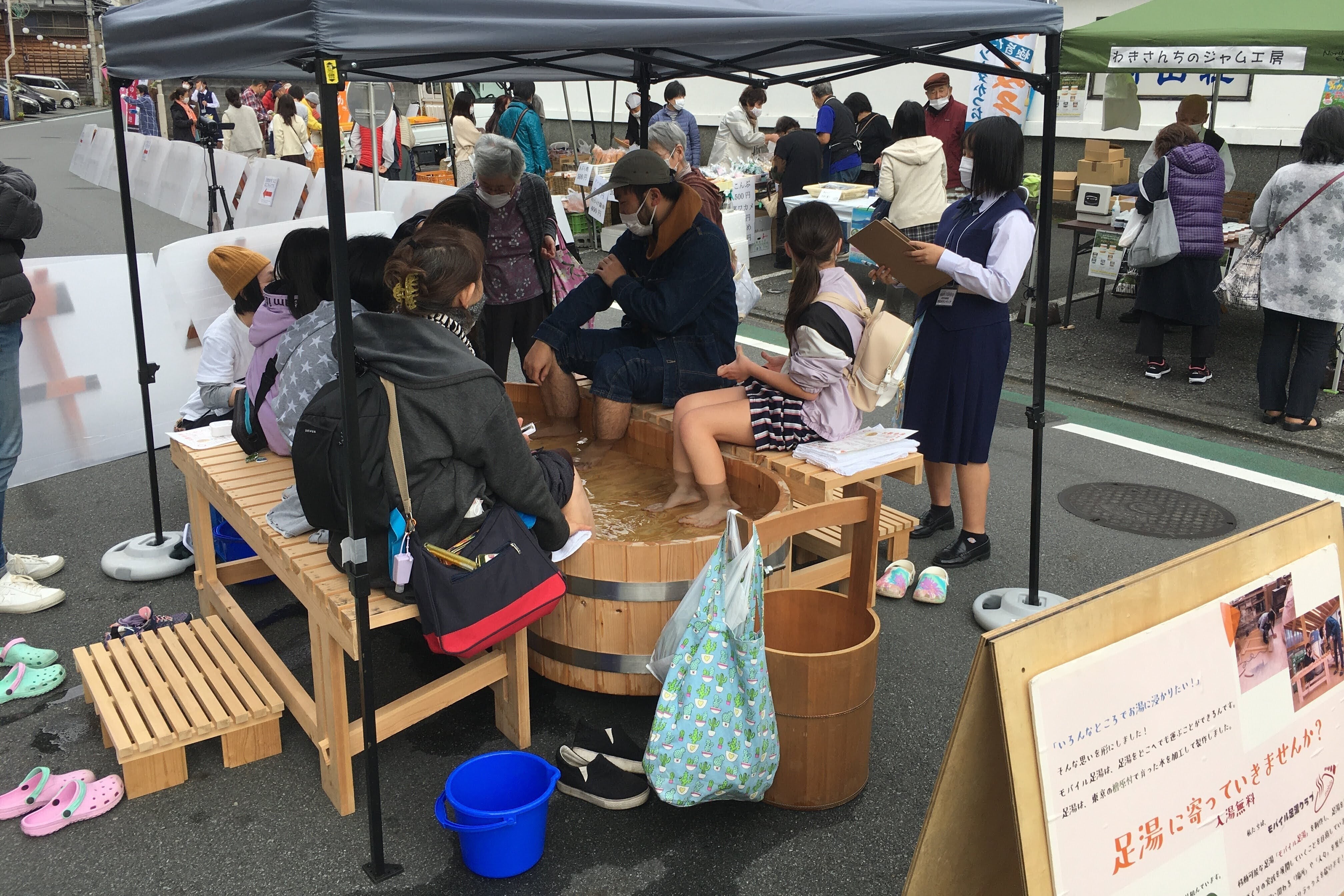 伊豆長岡温泉お散歩市の足湯にて