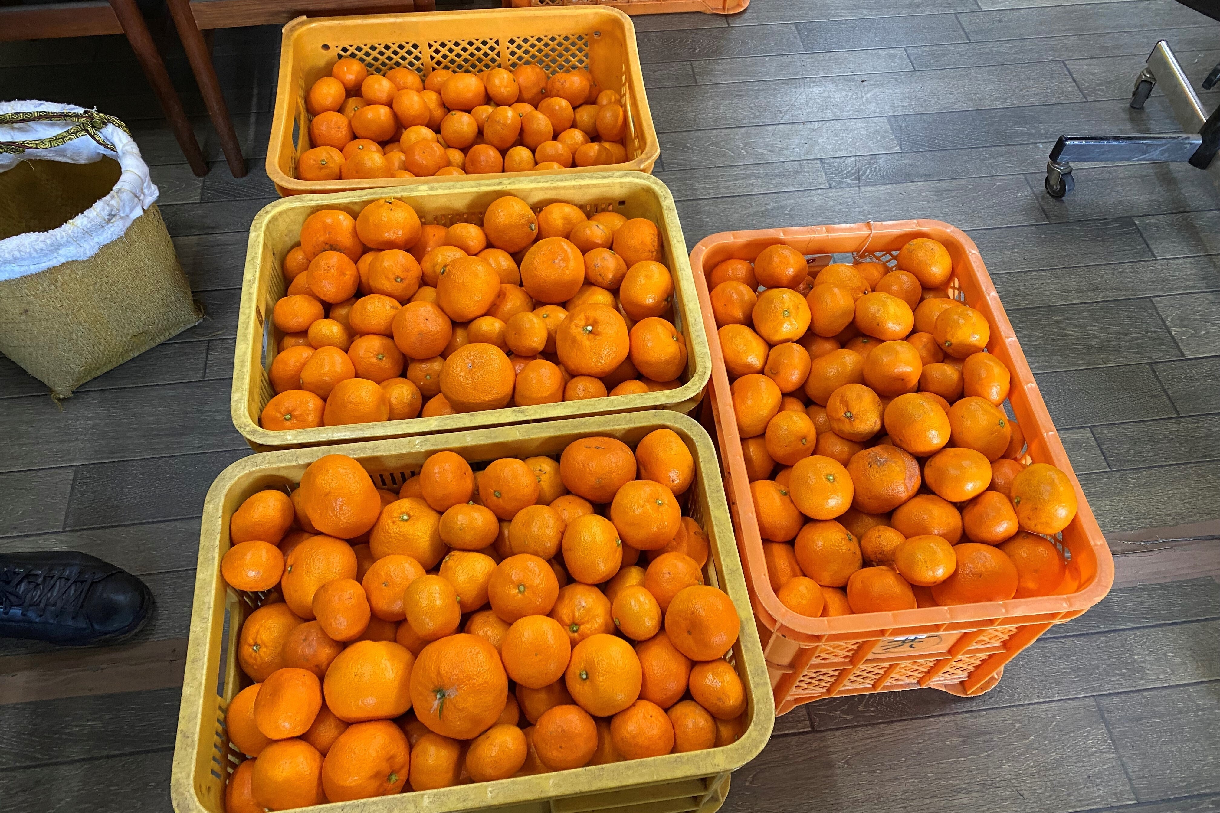 みかんは、収穫時期を終える直前に残ったものを活用させていただきました。