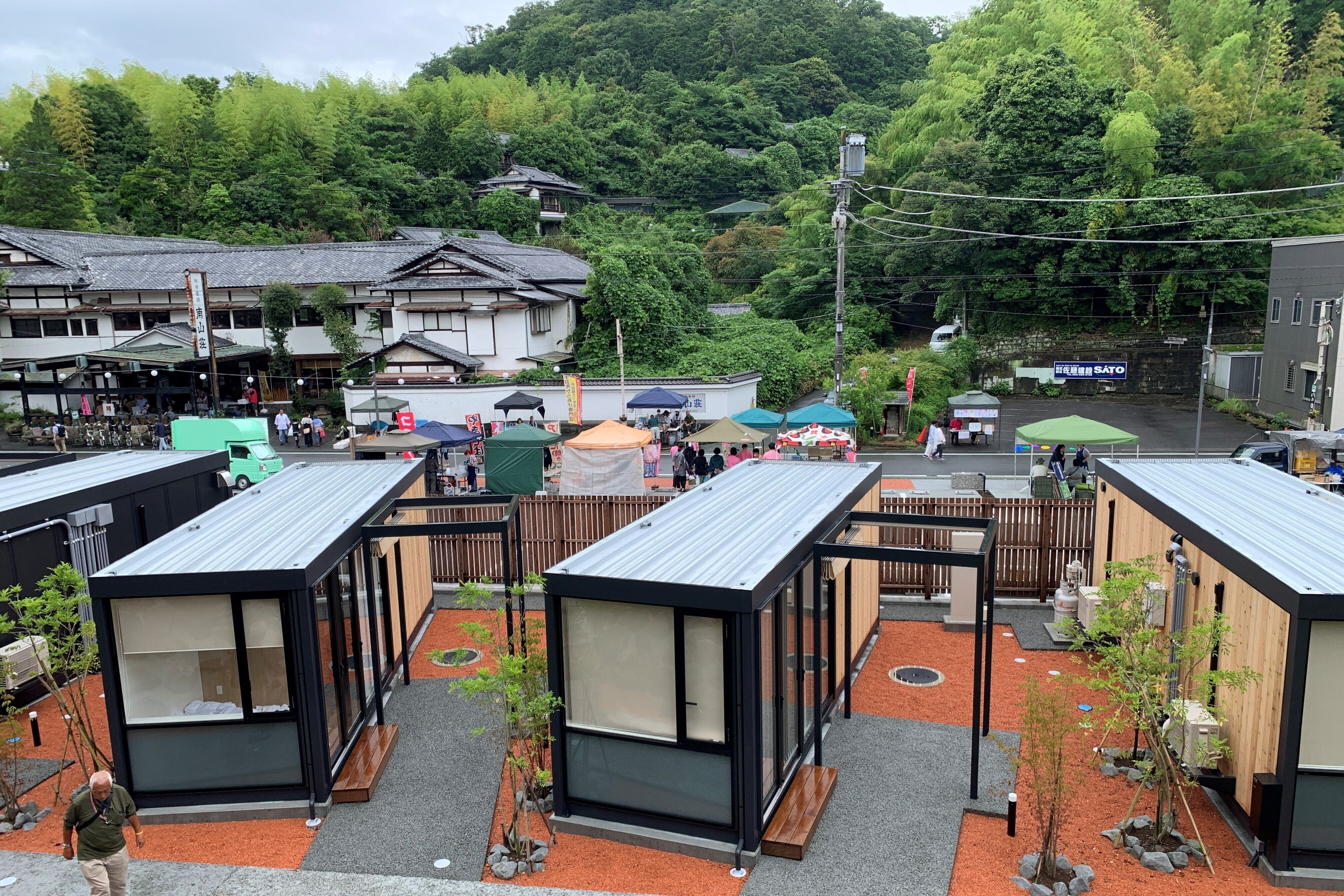 伊豆長岡エリマネは、シェアサイクル事業やe-bike(強力な電動アシスト機能のついたスポーツタイプ自転車)等の交通機能を積極的に導入し、令和5年にはWi-Fiの通信事業、廃旅館を撤去した跡地で複合施設開発「いずなかビレッジ」を開発し、施設内に新しいコンセプトの宿泊施設「さかなやステイ」を開業させるなど積極的に事業を展開しています。