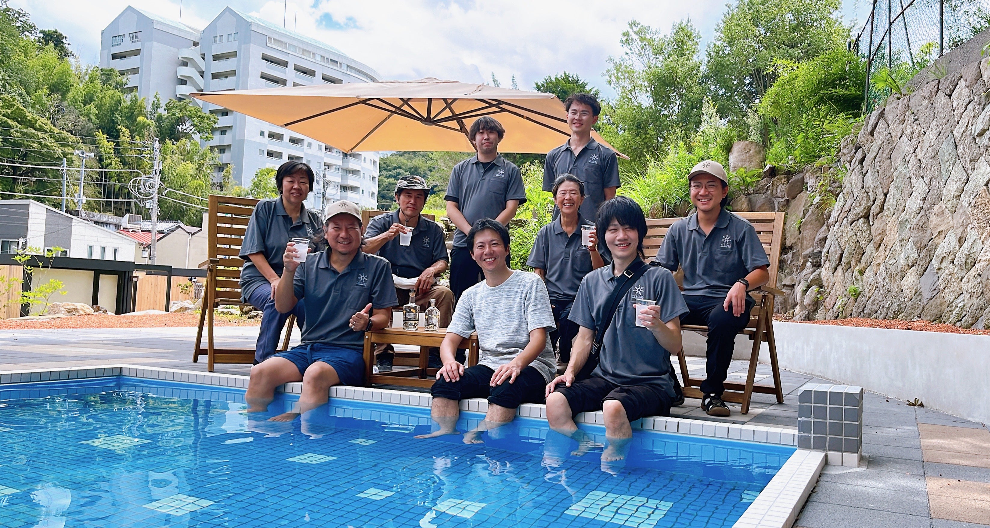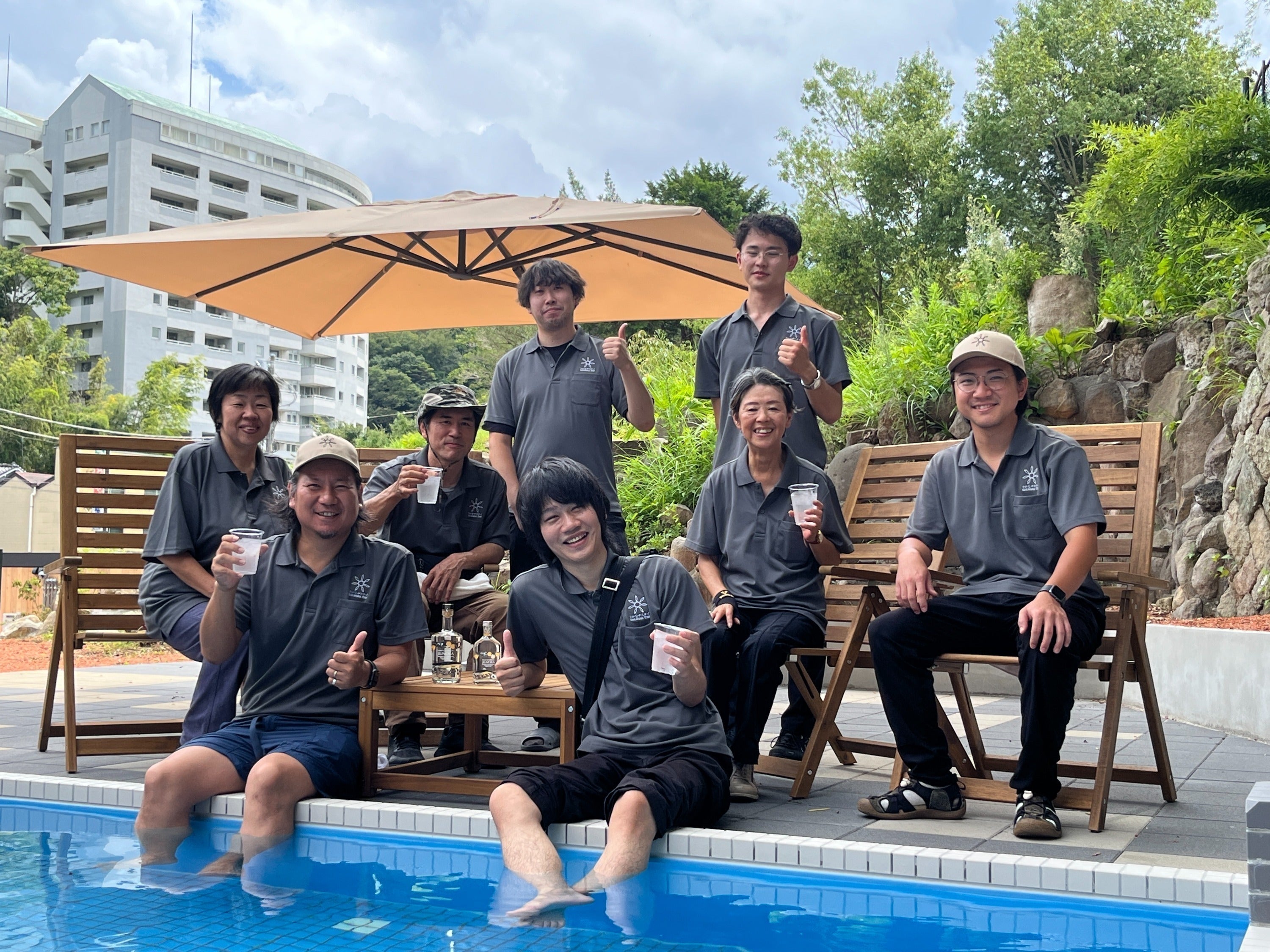令和5年6月にオープンした「さかなやステイ」に設置された源泉掛け流しプール「ぷ~ろ」のプールサイドでもこの爽やかなジンが飲めるように取り組みを進めていきます。