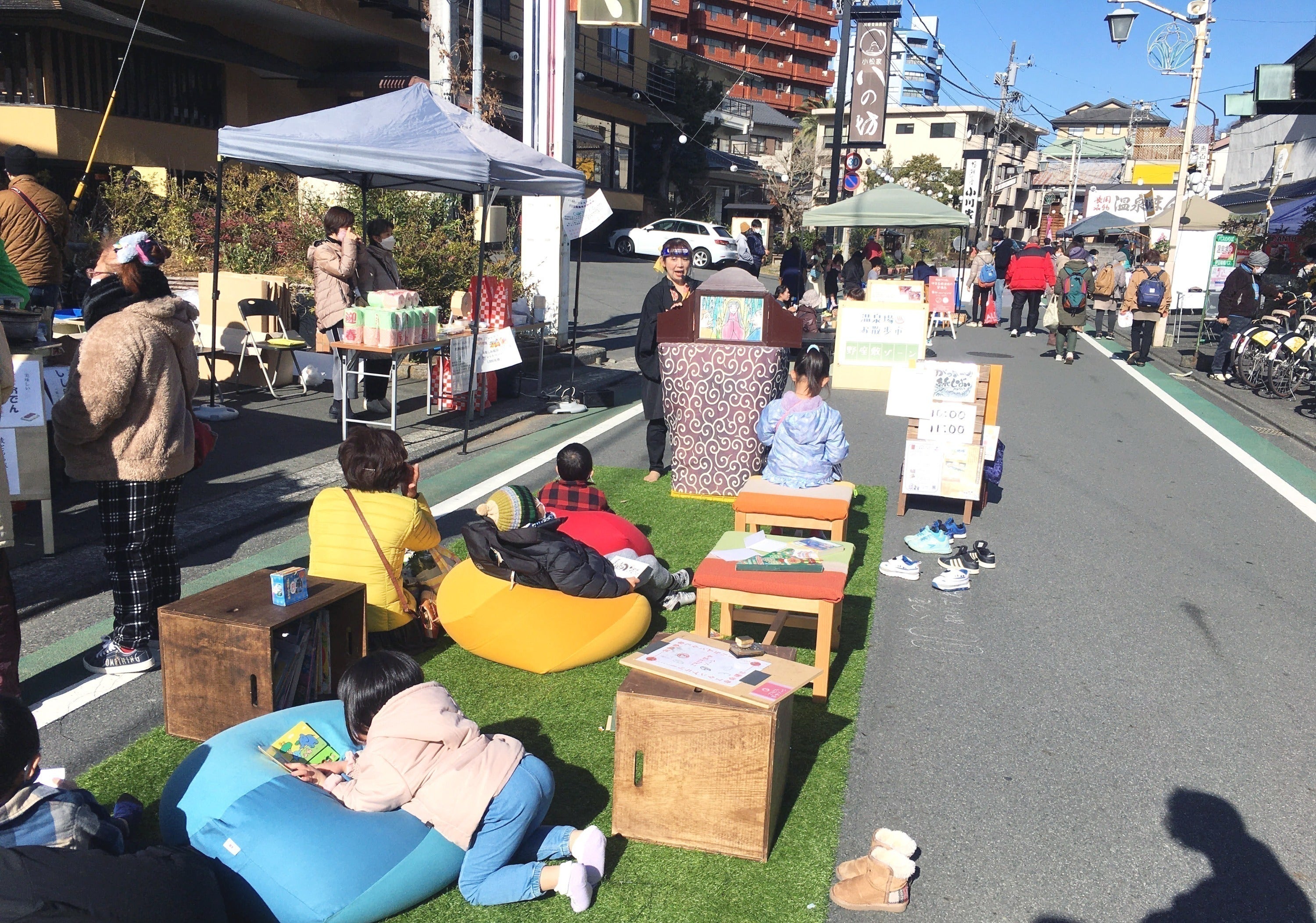 そんな中、温泉街の活性化に向けて旅館や地域住民・行政等が協力し、月に1回の伊豆長岡温泉お散歩市(マルシェ)が開始されました。