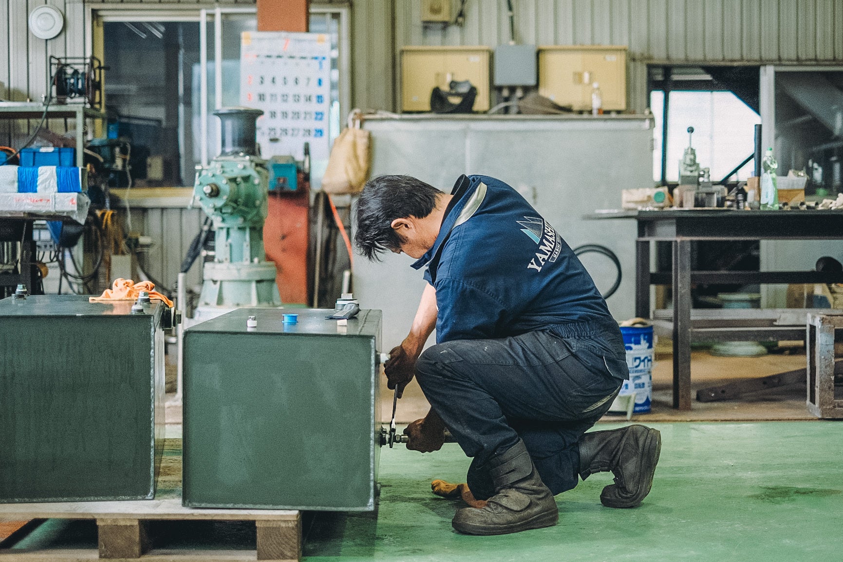 ホタテ養殖漁業の発祥の地であるこの場所で漁師さんが使う機械を販売したり、修理したり整備したりする仕事です。