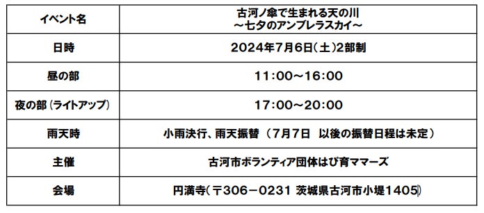 『 七夕のアンブレラスカイ 古河ノ傘で生まれる天の川 project 』を開催します!