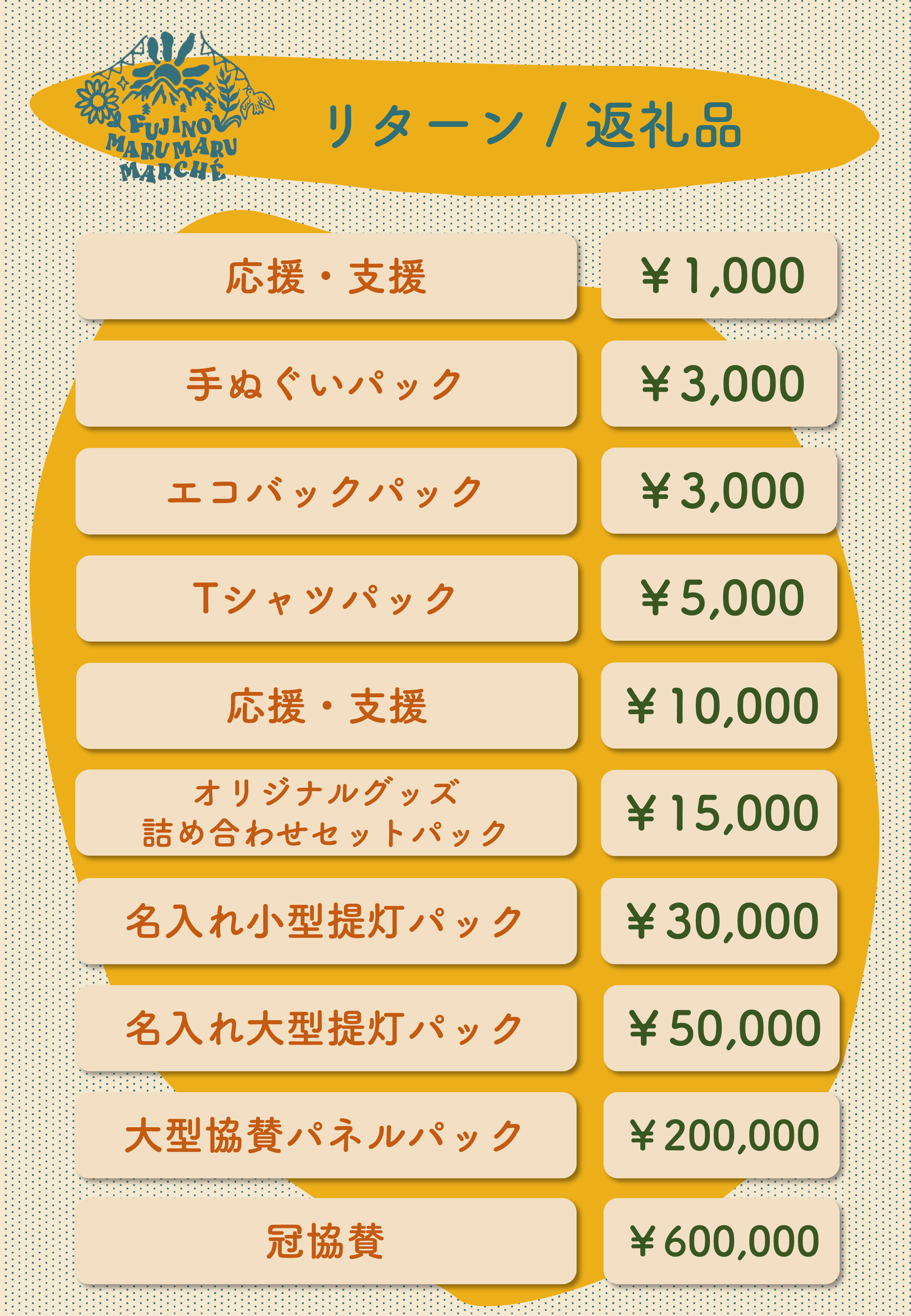 「藤野まるまるマルシェ」開催に向けて、出店者様や出演者様への謝礼や、会場設営費など、現時点での予算では開催することが厳しい状況下にある中で、実行委員と連携し、本プロジェクトの立ち上げを決断致しました。