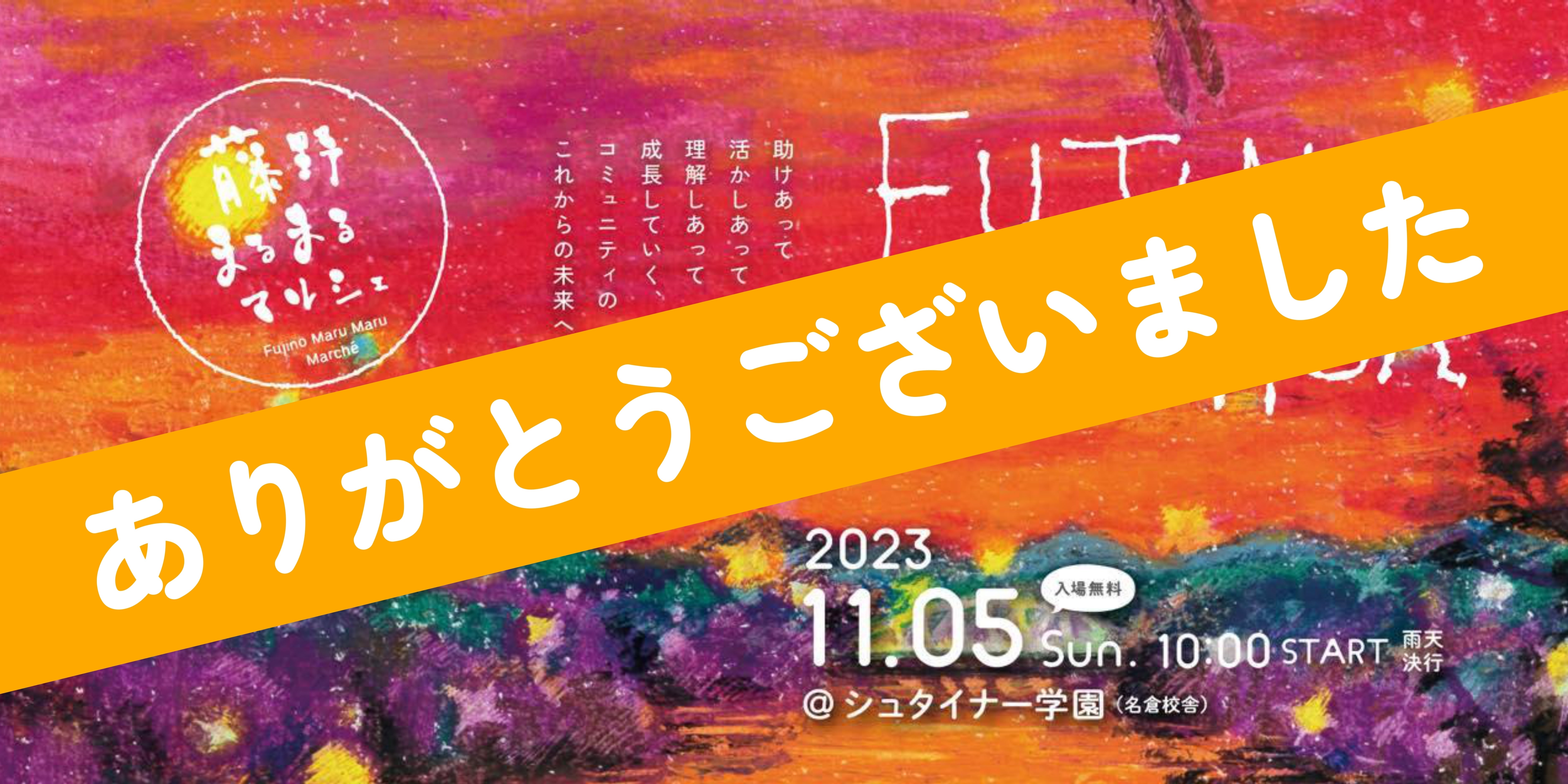 2023/11/14 21:03ご無沙汰しております、丹羽蓮一郎です。先日は、「藤野まるまるマルシェ」にお越しいただきありがとうございました。事前にお伝えしていました通り、支援金の一部を、会場の空間演出費用に充てさせて頂きました。「藤野まるまるマルシェ」の魅力が伝わるよう、暖色を基調とした心温まる空間を意識してデザインしました。人と人とのつながりを感じられる、温かい空間をイメージしたのですが、お楽しみ頂けましたでしょうか。私の「note」にて、会場の空間演出のこだわりや制作の裏側について、近日中に記事を公開を予定ですので、是非ご覧いただけましたら幸いです!・noteアカウント こちらから!▷https://note.com/shiny_gerbil745/その他にも、各SNSで情報を発信しておりますので、よろしくお願いいたします!!・Facebookアカウント▷https://www.facebook.com/RencihiroNiwa/・Instagramアカウント▷https://www.instagram.com/ren1111111111111111111111111ro/改めまして、ご支援・ご協力してくださった皆さま、そして温かく見守ってくださった皆さまに、心より感謝申し上げます。本当にありがとうございました。お陰様で、本クラウドファンディングは目標金額を上回る、多くの支援を頂き、支援額110%で掲載終了を迎えることができました。皆さまから頂戴したご支援は、今年度の「藤野まるまるマルシェ」だけでなく、来年以降の開催に向けて、大切に使わせていただきます。「藤野まるまるマルシェ」は、先日11月5日に、晴天にも恵まれ無事に開催することができました。会場にお越し頂いた皆さま、ありがとうございました。そして当日来られなかった方も、温かくお見守りいただきありがとうございました。以前よりお伝えしておりました通り、11月中に、ご支援いただたリターン(返礼品)を、支援者様のご自宅(ご記入頂いた住所)に郵送にてお送りいたします。現在、準備と製作を進めておりますので、もうしばらくお待ちいただけますと幸いです。今回お届けする返礼品は、「藤野まるまるマルシェ」オリジナルデザインの、松村剛さんがデザインを手掛けられた "COME✴︎UNITY" となっております。※ポストカードは、内田松里さんによるデザインとなっております。各オリジナルグッズは、一点一点、シルクスクリーンの手刷りで、心を込めてお作りします。そのため一つ一つ違った風合いやかすれ、色の変化などがありますが、予めご了承くださいませ。【重要】<「手ぬぐい」のご支援を頂き、お選びいただいた方へご案内> 当初予定していた単色カラー(薄緑色(ライトグリーン)、薄桃色(ライトピンク)、水色(スカイブルー)、山吹色(ブライトイエロー)以外に、こちらのグラデーションカラーを製作いたしました。グラデーションカラー(イメージ)マルシェ当日の販売売り上げでは、グラデーションカラーが人気でしたので、既にご支援頂いている皆様の中で、こちらのカラーへ変更をご希望の方はお知らせください。※色のご指定はできませんので、予めご了承ください。ご連絡は、本クラウドファンディングプロジェクトのトップページにある「メッセージを送る」機能にてお願いいたします。また、難しい場合はこちらのメールアドレス「renkiss2020@gmail.com」宛にて、ご連絡をお願いいたします。変更のご希望のない方は、既にお選び頂いております、単色プリントの手ぬぐいをお送りいたします。何卒よろしくお願い申し上げます。「藤野まるまるマルシェ」実行委員会一同 もっと見る
