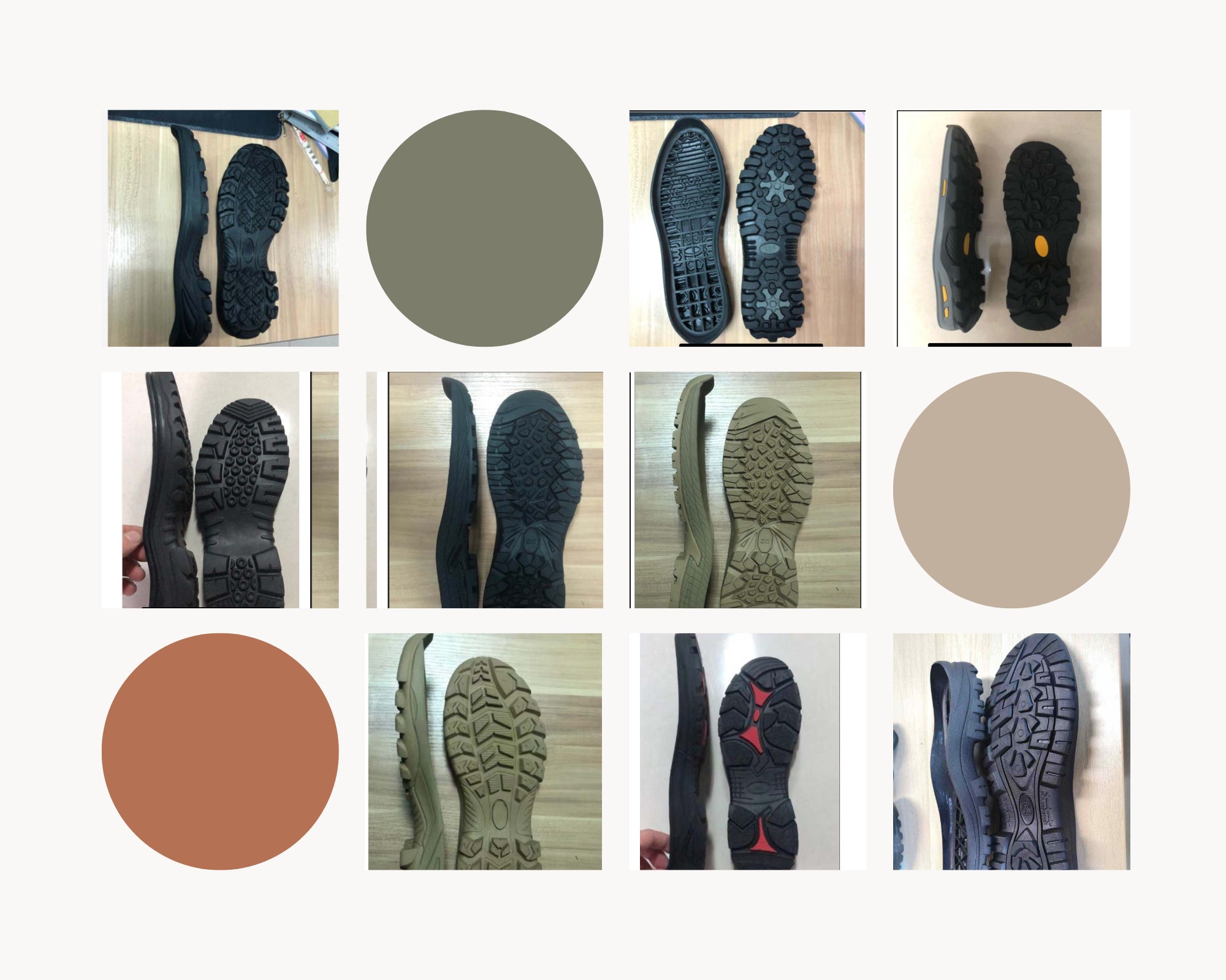 この写真は、開発時に検討したアウトソールの一部です。最終決定のポイントは「耐滑性能」です。