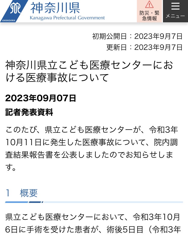 報告者の詳細は黒塗りもあるのではっきりしませんが手術を受けた術後5日で子供が亡くなってしまったという報告でした。病院としての心肺停止原因は敗血症の可能性、下痢症状に伴う脱水症、低カリウム血症による全身状態の悪化、非代償性ショックの関与でした。家族からは当直医がアレルギー内科であったり、一般病棟移動後状態が悪かったにも関わらず若い医師が担当していた事と脱水状態への気付きや相談報告が看護師間で共有されていなかった事などを訴えています。・・・・一生懸命に働いているスタッフもいると思います。ご家族も関わった医療スタッフも誰にも良い事がないのが医療事故です。なんとかしてあげたい。心に余裕を持っている医療従事者が増えれば、きっと誰も喜ばない事故を減らせると思います。活動の支援をお願い致します。院内調査報告者はこちら