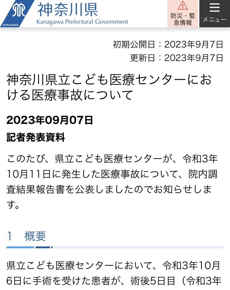 報告者の詳細は黒塗りもあるのではっきりしませんが手術を受けた術後5日で子供が亡くなってしまったという報告でした。