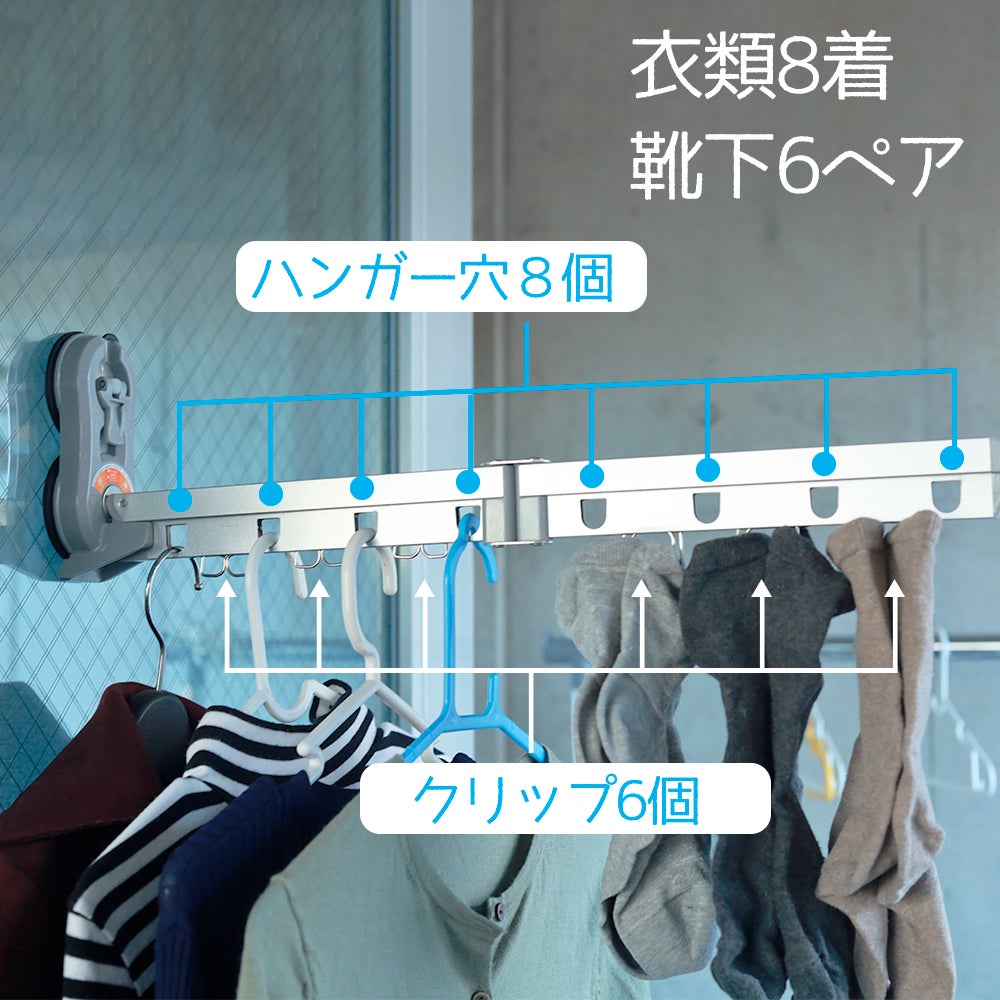 衣類8枚、靴下6足まで掛けることが可能。