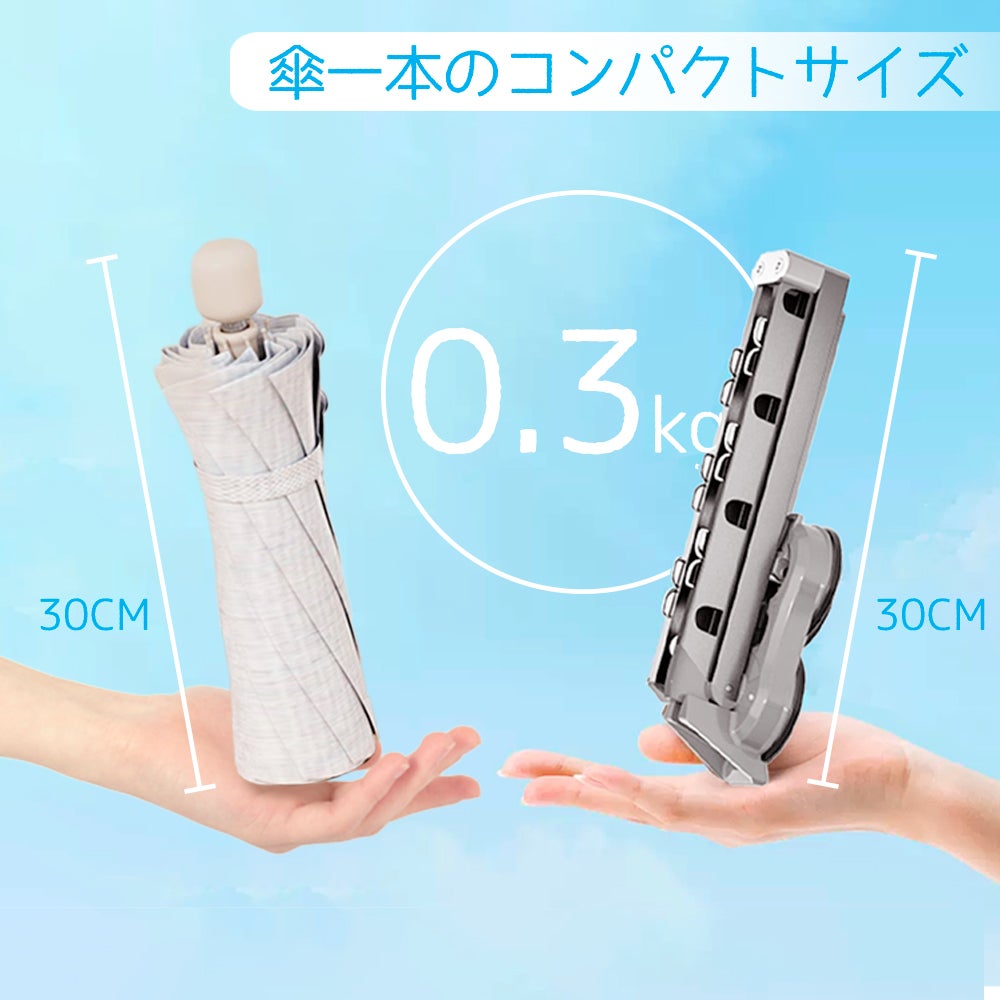 折り畳みサイズは30cm、わずか約0.3kg、付属品の巾着袋にいれて、持ち運びとても便利!