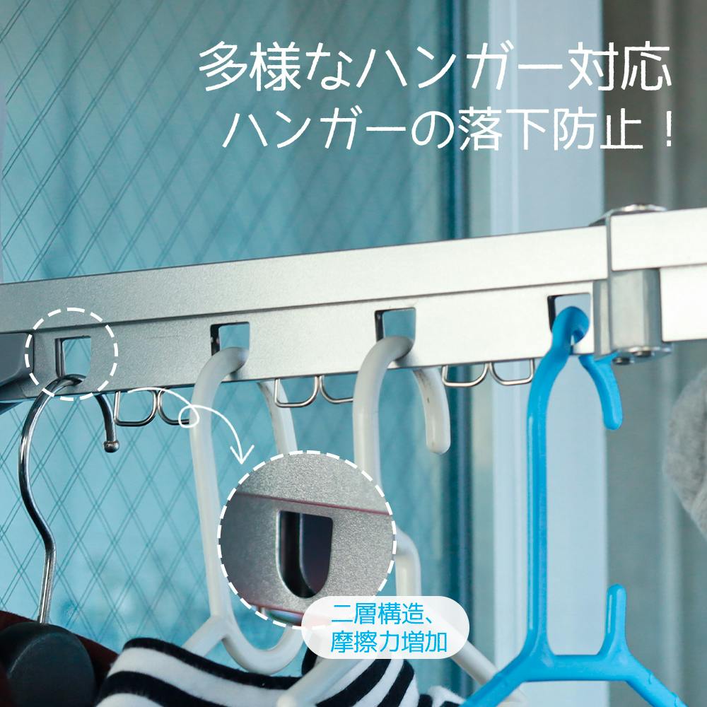 二層構造デザインにより、ハンガーとの摩擦が増加し、ハンガーが落ちにくくなりました。