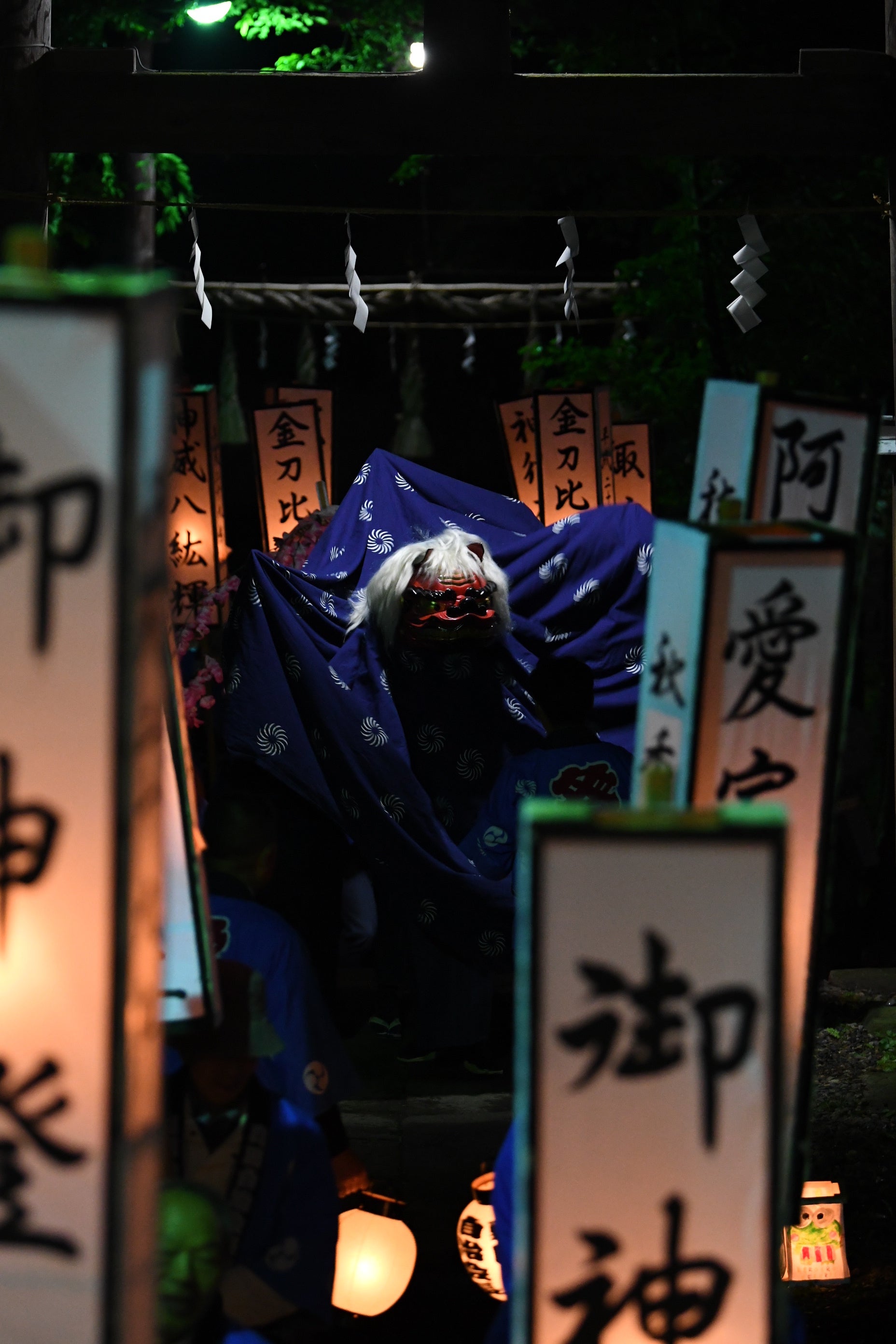 18時より長小学校から山家神社までの道中及び、一の鳥居から拝殿前までの参道を獅子と一緒に練り歩きます。