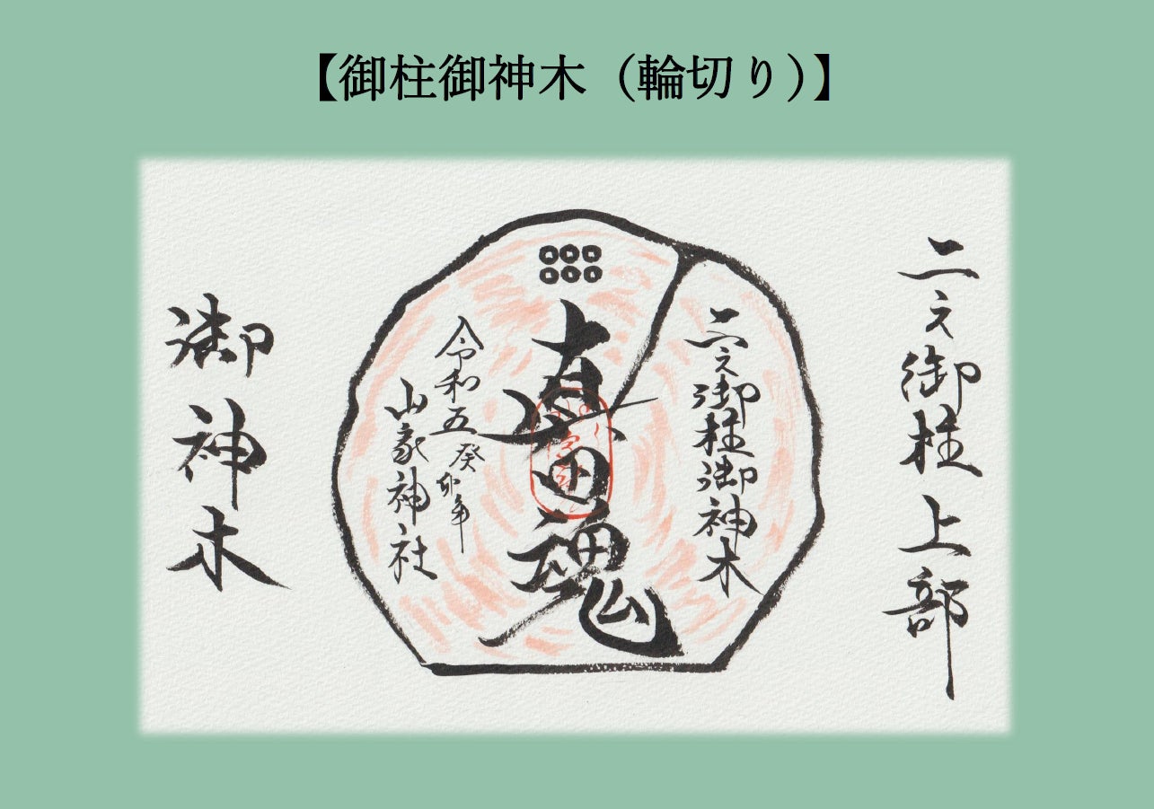 二之御柱となる上部の御神木に宮司が揮毫した縁起物。