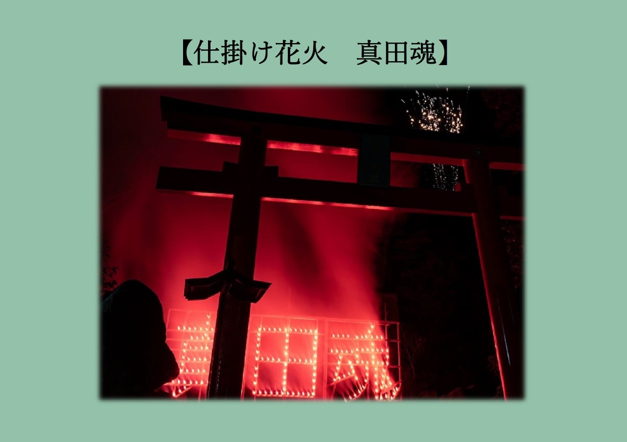 花火からカウントダウンスペシャルゴッドリバー(RE:何それ!?ですよね)、昔の屋台をやってみた、御柱祭等、花火に関わらず真田での一連の挑戦を『真田の仕掛け』としております。