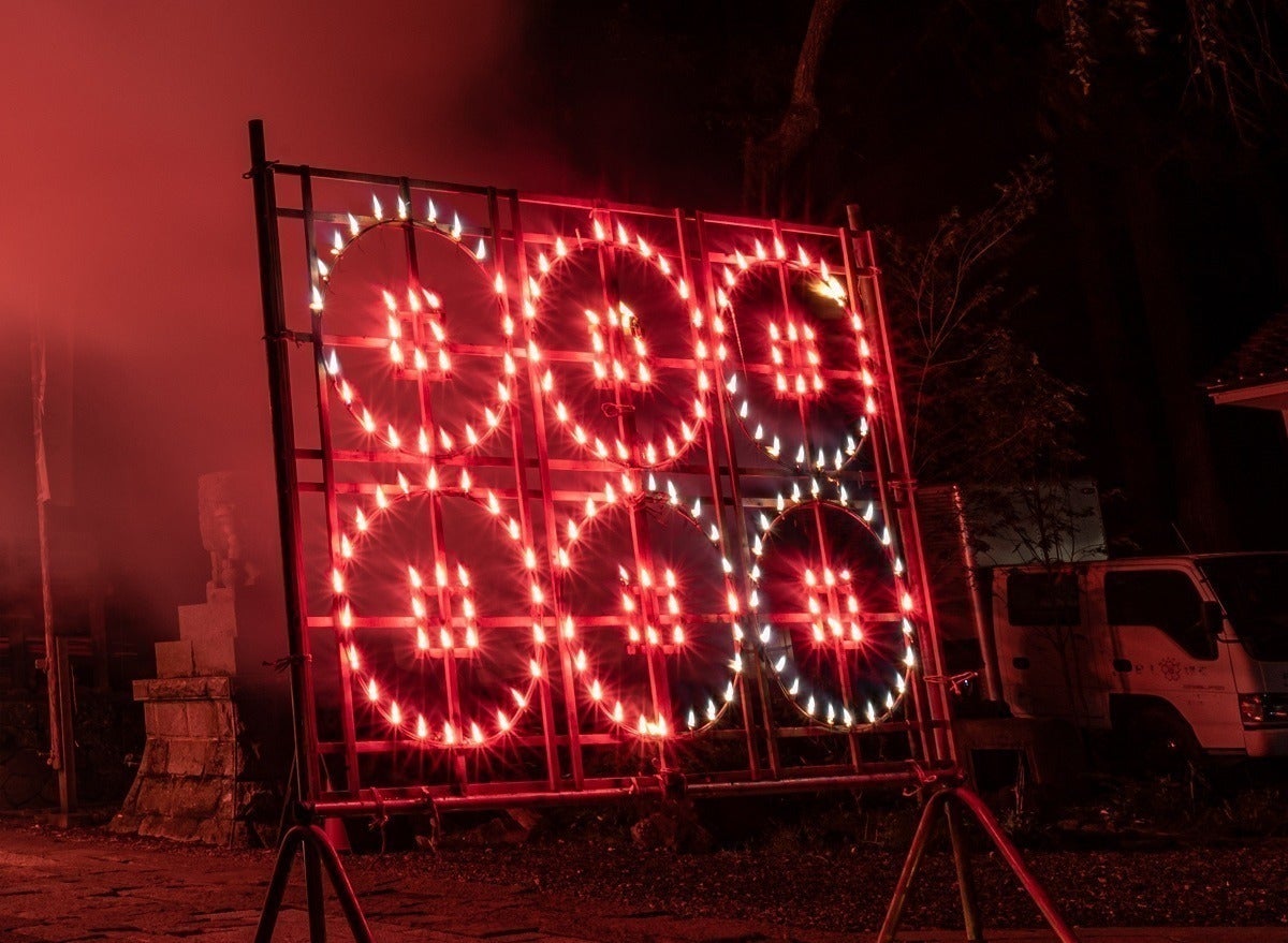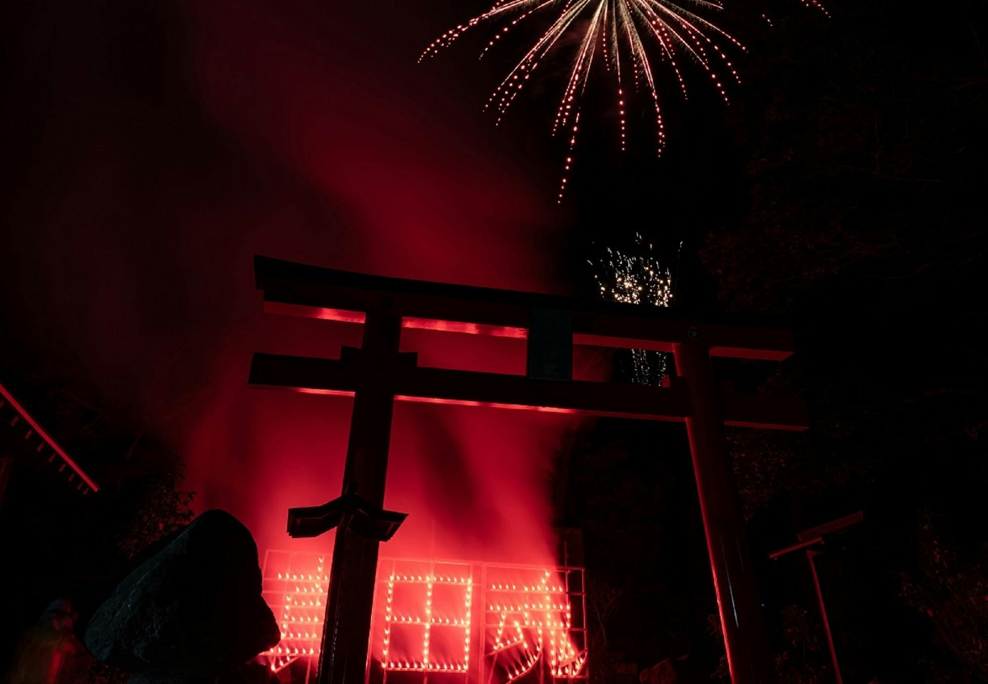 手には宮司が目指す、百氣彌光の仕掛けである"魂提灯"を持ち揃いの"魂まといTシャツ"を着用します。
