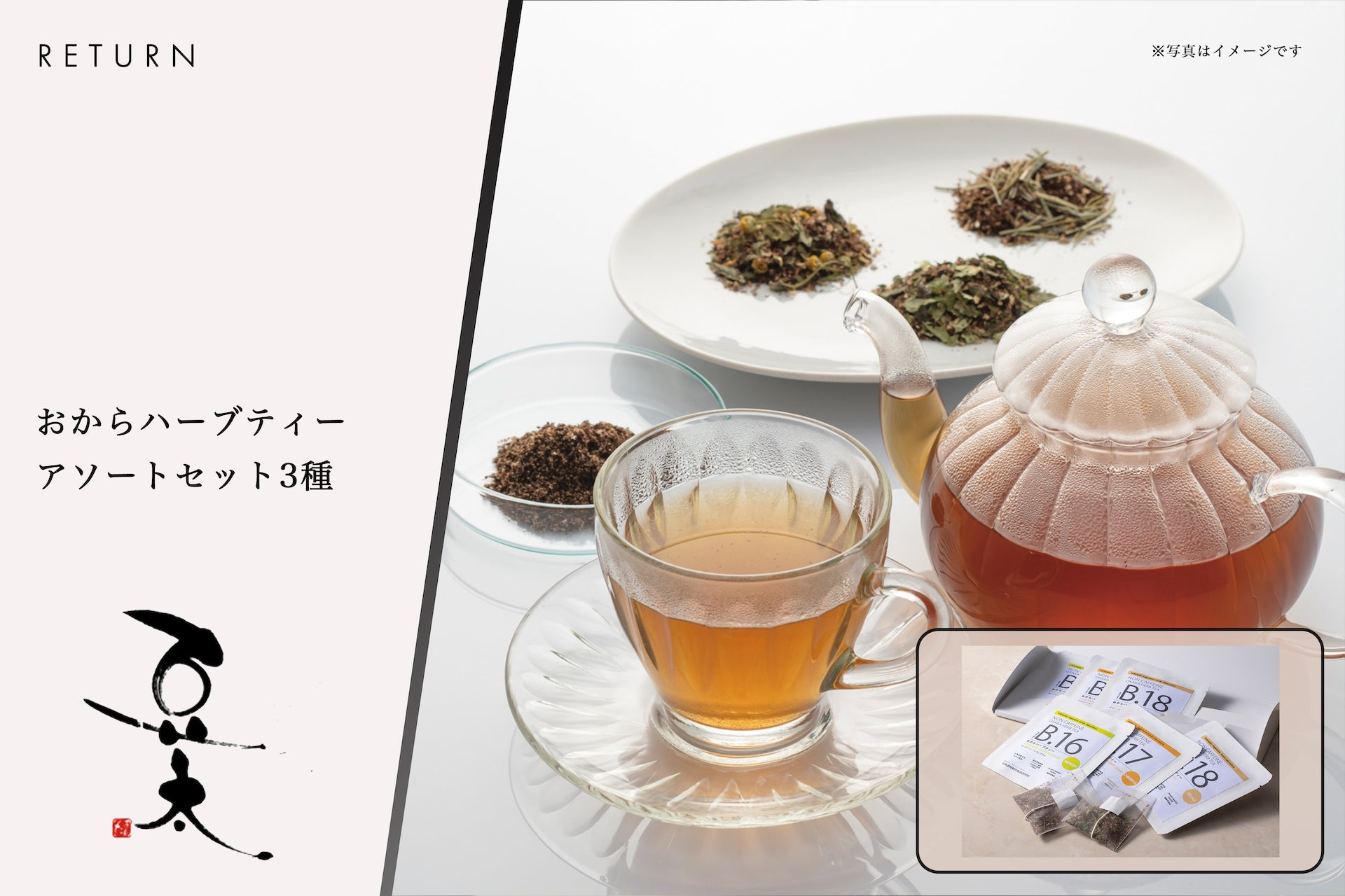 【おからハーブティー・アソートセット】リフレッシュ、チアフル、リラックスの3種類の組合せセット