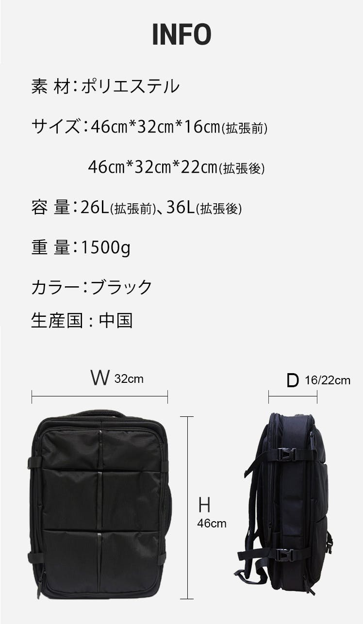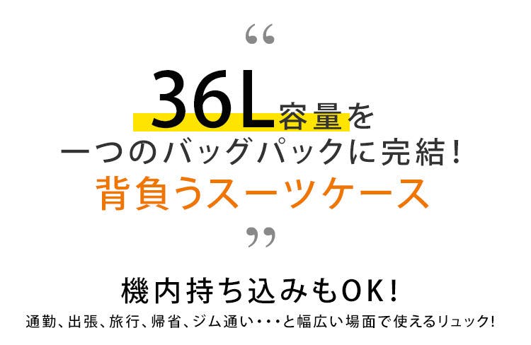 36L多機能トラベルパックは、収納力抜群のボディとこだわり抜いた様々な機能が実装されています。高品質ながら、デザイン、収納、機能性を持ち合わせ、全てのトラベルやビジネスパーソンにおすすめ!