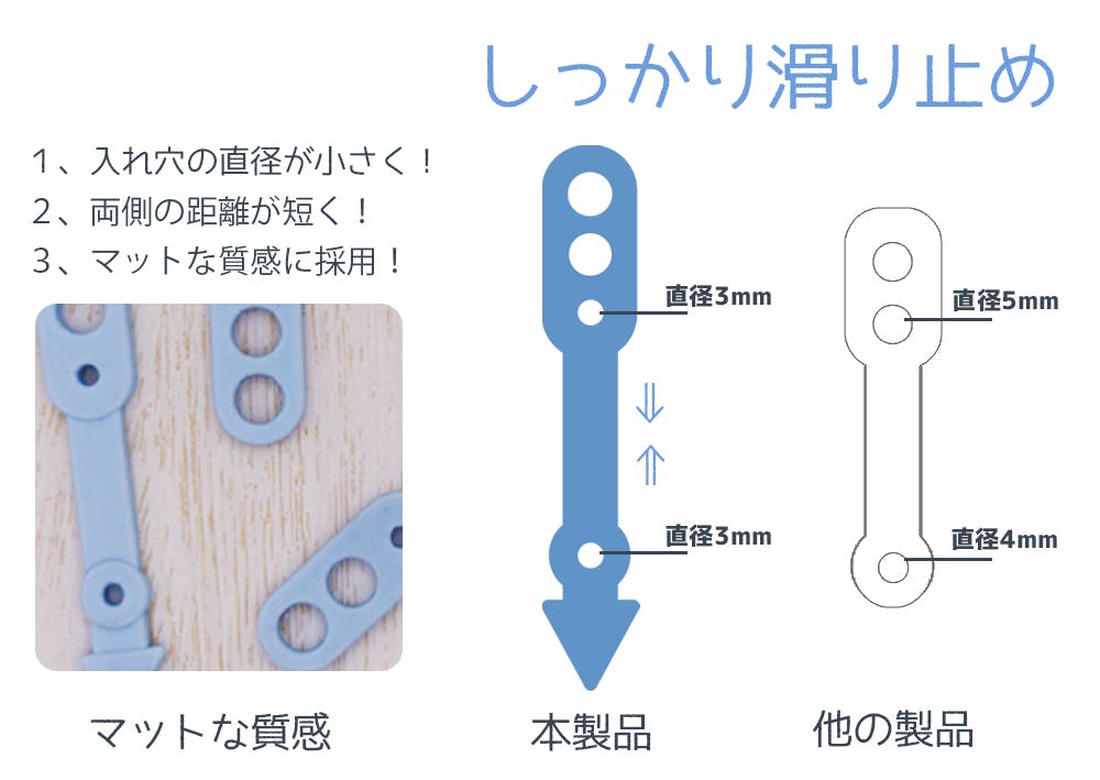①本製品の入れ穴を小さめにして、ハンガーと本製品間の摩擦力を増大できます。