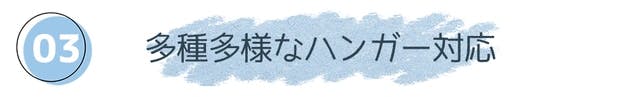 細くても、太くても、プラスチック製、金属製、木製など、多種多様な市販のハンガーに対応できます!
