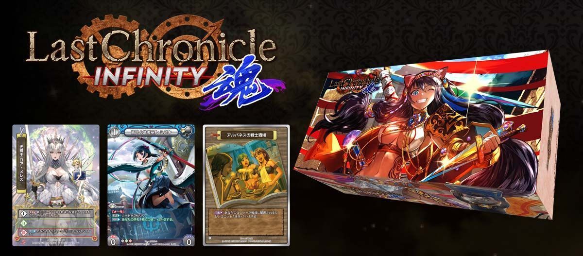 ラストクロニクル インフィニティ第4弾「ラストクロニクル インフィニティ 魂」クラウドファンディングが、目標金額490%到達で終了しました! 129名の支援者様に感謝いたします。リターンの発送は12月中に行う予定で進んでおります。引き続き活動報告で経過をお伝えしてまいります。重ねて、多数のご支援にお礼申し上げます。誠にありがとうございます。