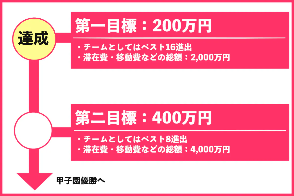 甲子園出場は、学校にとって大変名誉なことではございますが、その一方で大会期間中の交通費・宿泊費、応援生徒たちの甲子園入場チケット費・交通費・宿泊費をはじめ、非常に多額の費用を要します。滞在期間が長期間になればなるほど、莫大な費用が必要となりますし、それに加え、甲子園に出場する選手や応援する生徒の安全を守るため、コロナ対策にも十分に取り組む必要があります。それら全てを学校関係者だけでまかなうには限界があります。多くの皆様に選手たちの甲子園での活躍へのご支援を賜りたく、今回のクラウドファンディングを立ち上げました。