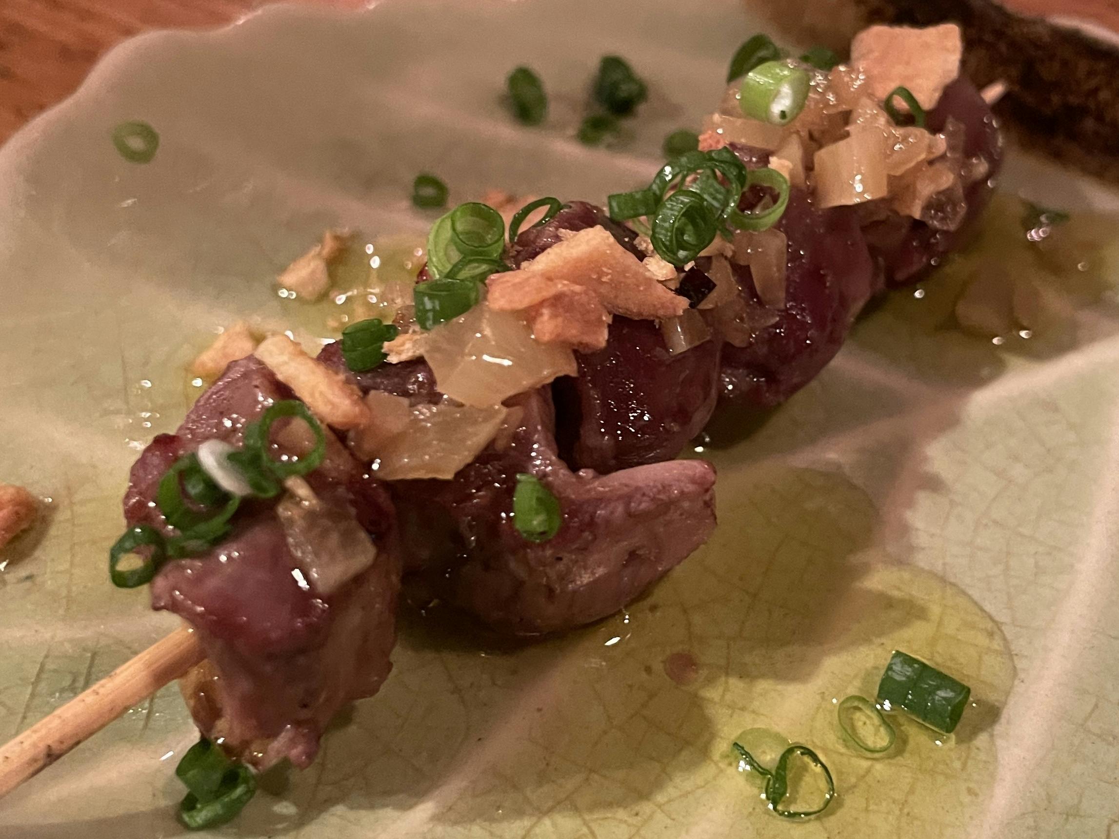 例えばもも肉や砂肝等でも単に塩や焼きダレだけじゃなく、焼き鳥なのにイタリアンやエスニックも楽しめるように味付けや見た目にアレンジを加えた創作串も考案しています。