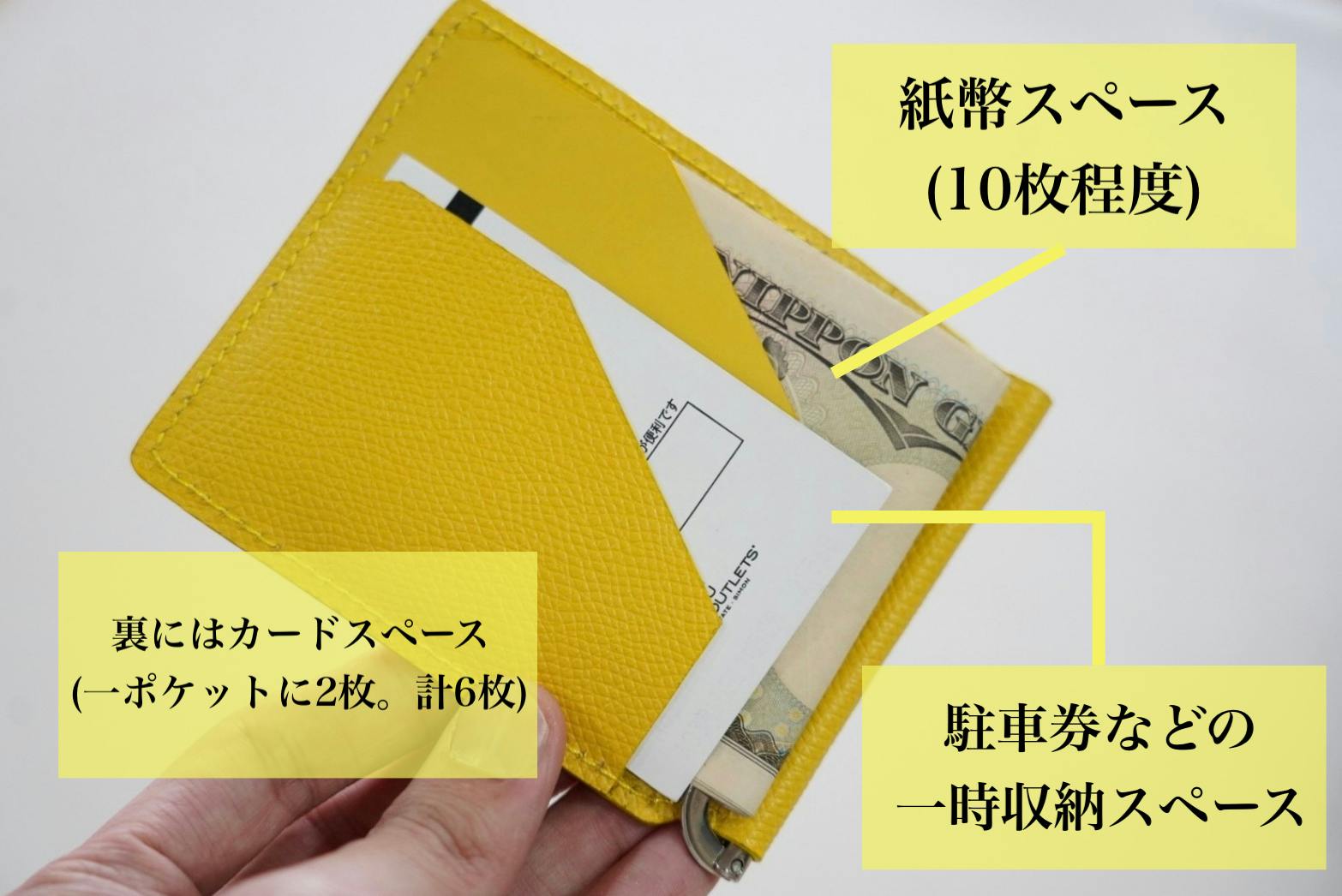 お札が10枚・カードが6枚というコンパクト設計。