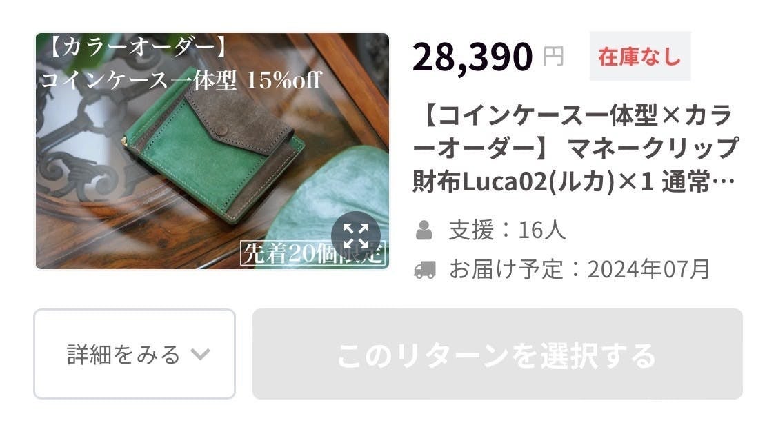 またコインケース一体型カラーオーダーのリターンは完売となりました!