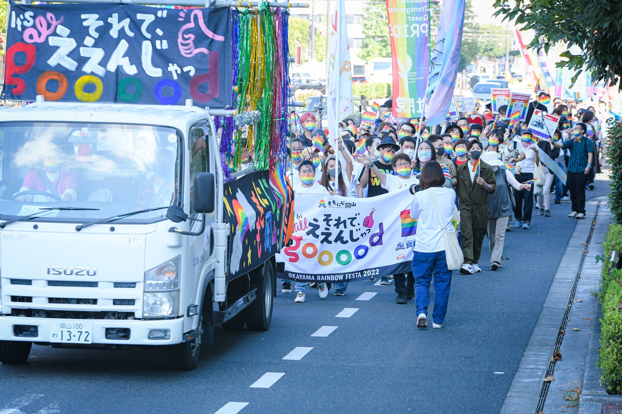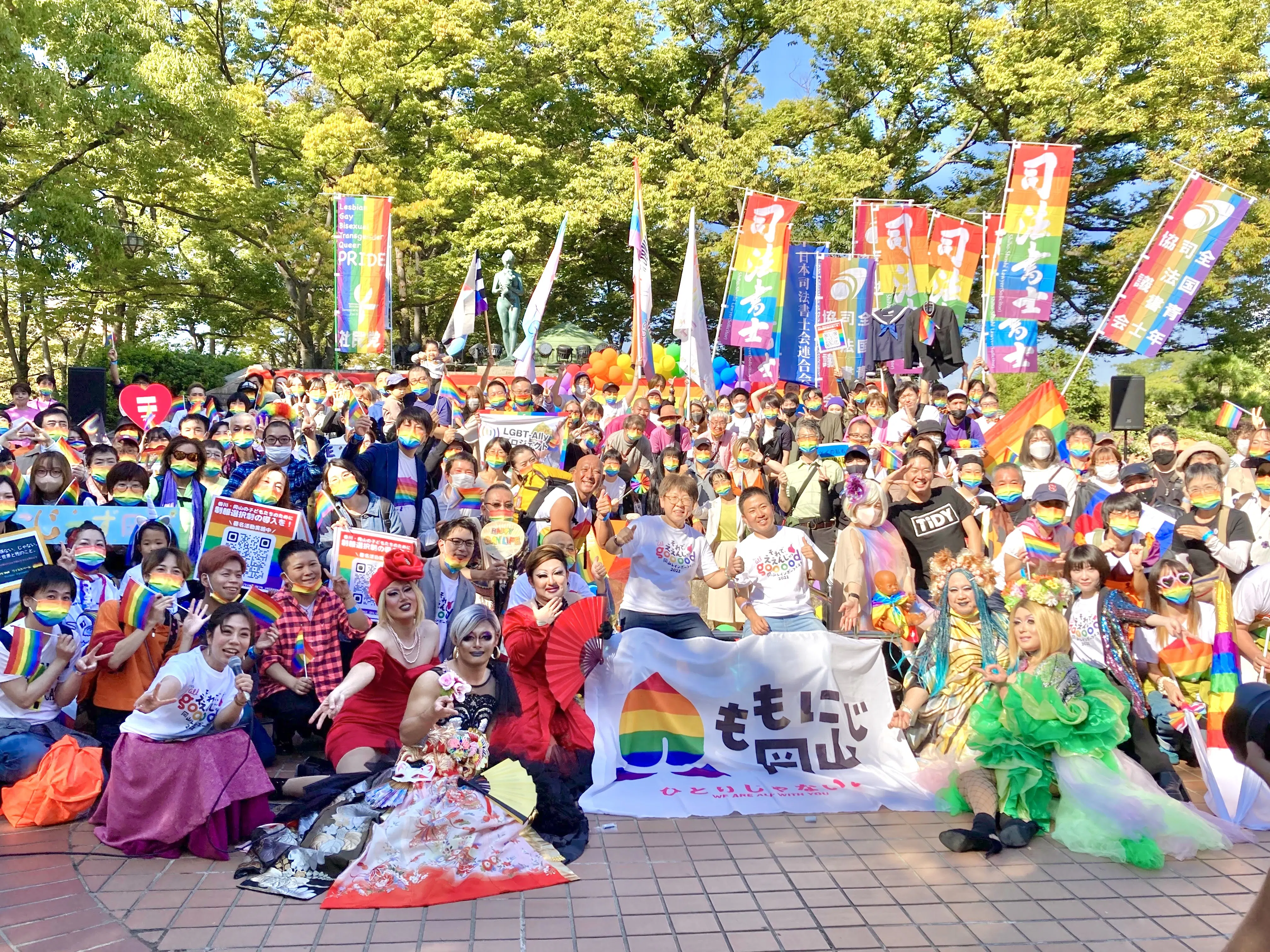 2021年、2022年と、コロナ禍にありながら、2年続けて、岡山でレインボーパレードを開催することができました。これは主催の「ももにじ岡山」のメンバーだけの力で成し得たことではなく、さまざまな形で支援・協力をしてくださった多くの方々、そして、パレードに参加し、私たちと一緒に声を上げてくださった方々がいてこそ達成できたことです。あらためて、感謝の意を表します。ありがとうございました。